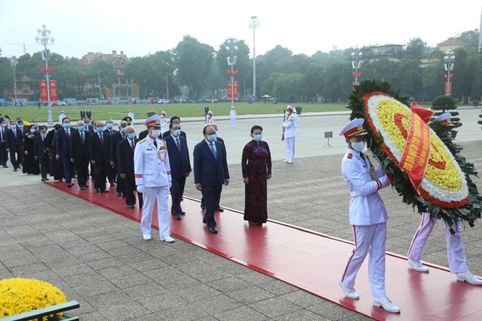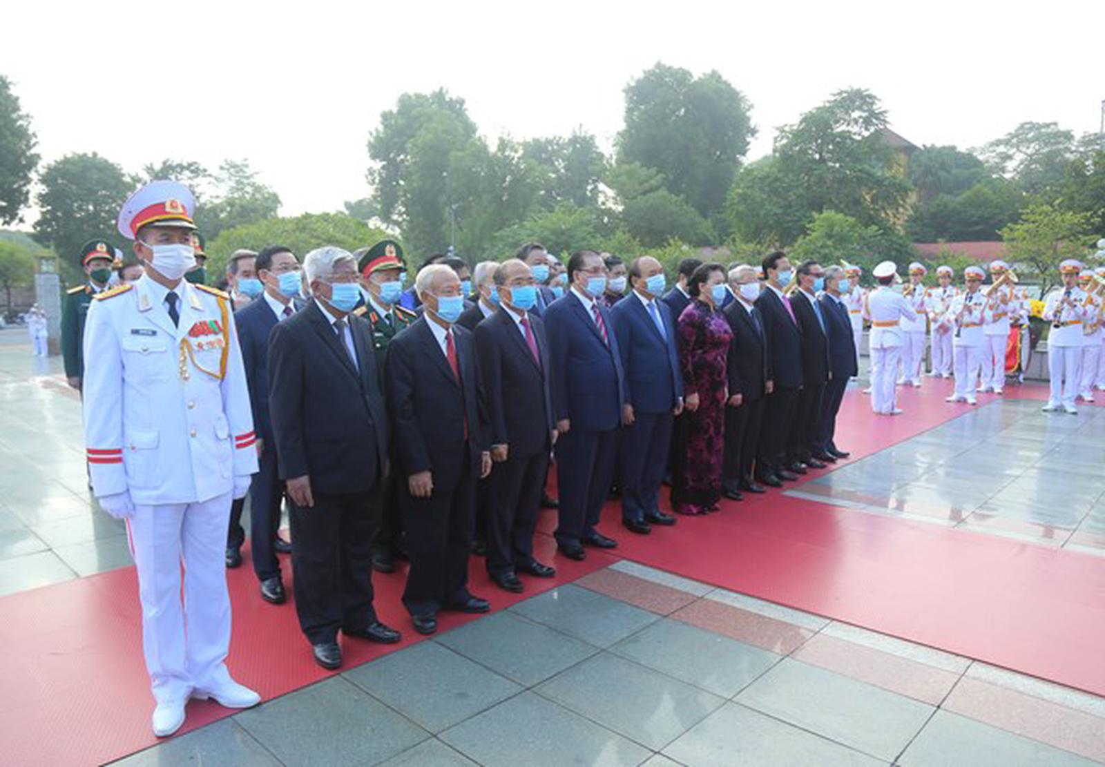 Lãnh đạo, nguyên lãnh đạo Đảng, Nhà nước, MTTQ Việt Nam vào Lăng viếng Chủ tịch Hồ Chí Minh. Ảnh: Kì Anh