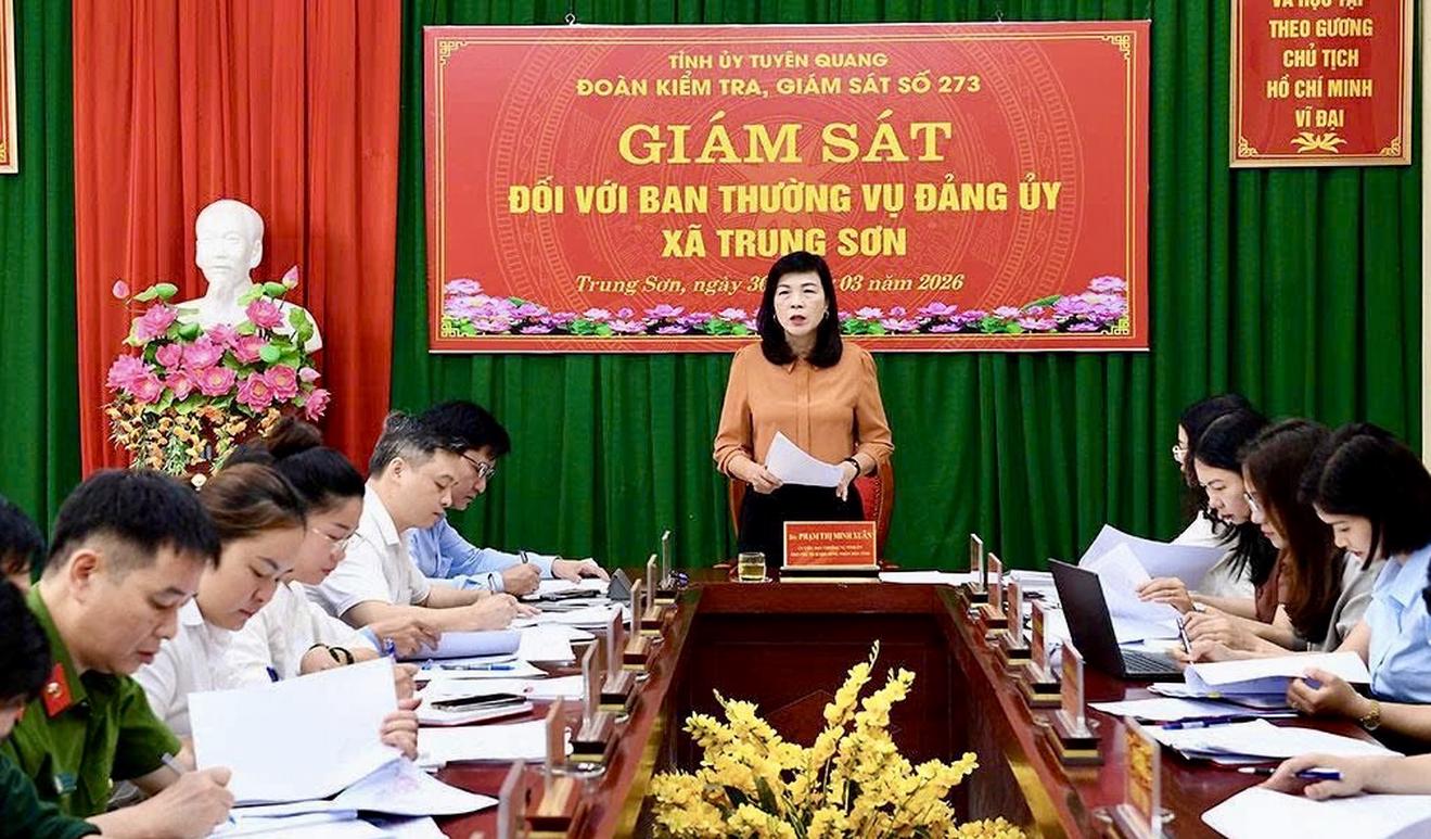 Sáng 30/3, Đoàn kiểm tra, giám sát số 273 của Ban Thường vụ Tỉnh ủy Tuyên Quang do Phó Chủ tịch HĐND tỉnh Tuyên Quang Phạm Thị Minh Xuân làm Trưởng đoàn đã làm việc với Ban Thường vụ Đảng ủy xã Trung Sơn về công tác lãnh đạo, chỉ đạo và tổ chức thực hiện các nhiệm vụ tại địa phương.