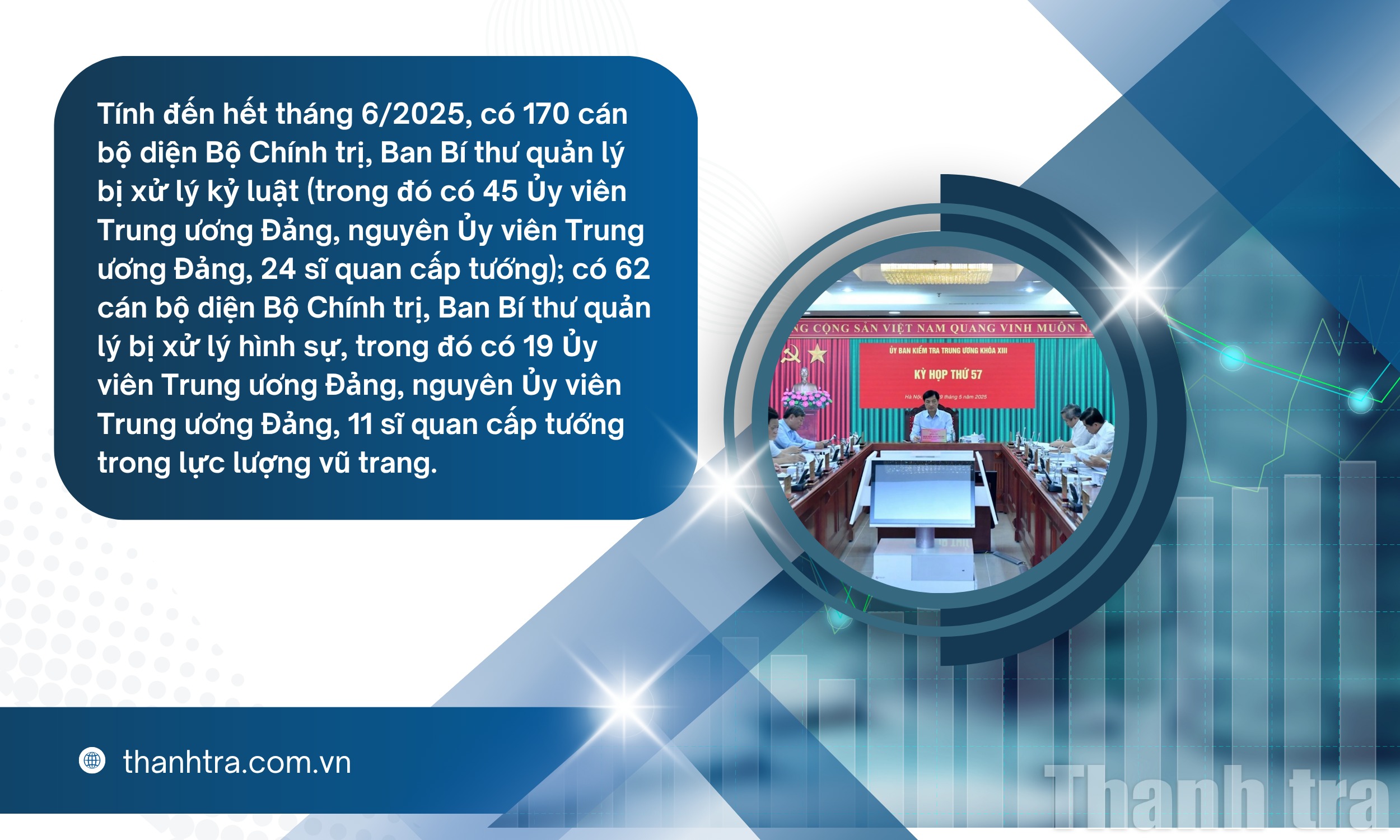 Từ đầu nhiệm kỳ đến hết tháng 6/2025, các cơ quan tiến hành tố tụng địa phương đã khởi tố, điều tra hơn 2.500 vụ án tham nhũng, cao gần gấp hai lần số vụ án tham nhũng của cả nước đã khởi tố trong nhiệm kỳ Đại hội XII. Nhiều địa phương đã phát hiện, điều tra, xử lý dứt điểm các vụ án, vụ việc tồn đọng kéo dài từ nhiều năm trước; nhiều địa phương khởi tố, điều tra cả bị can là cán bộ diện tỉnh ủy, thành ủy quản lý, thậm chí có địa phương khởi tố, điều tra cả bị can là cán bộ diện Bộ Chính trị, Ban Bí thư quản lý, điển hình, như: Vĩnh Phúc, Thanh Hoá, Lào Cai, Phú Yên, Quảng Ninh, Hà Nam, Hoà Bình, Đà Nẵng, Bà Rịa - Vũng Tàu, Yên Bái, Hà Giang, Nghệ An, Bình Định, Bắc Ninh, Lai Châu, An Giang, Kiên Giang, Khánh Hoà, Đồng Nai, Lạng Sơn, Cao Bằng, Thái Bình, Gia Lai, Nam Định,...