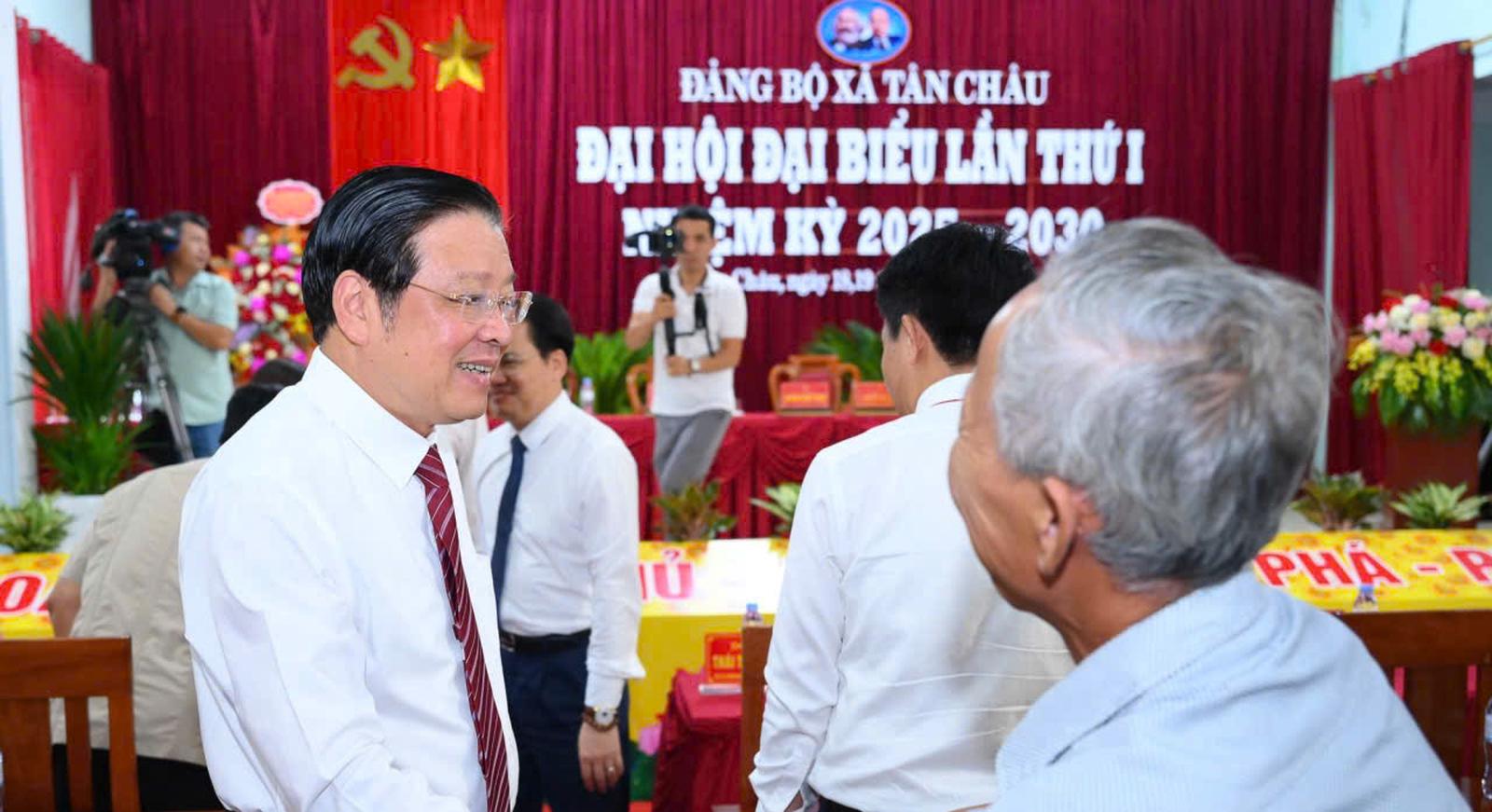 Phát biểu chỉ đạo tại Đại hội, đồng chí Phan Đình Trạc đánh giá cao những kết quả mà Tân Châu đã đạt được trong nhiệm kỳ qua. Đồng chí khẳng định, thành tựu không chỉ là phép cộng từ 4 xã sáp nhập, mà là kết tinh từ sự đoàn kết, thống nhất và nỗ lực bền bỉ của cả hệ thống chính trị, cán bộ, đảng viên và nhân dân.
