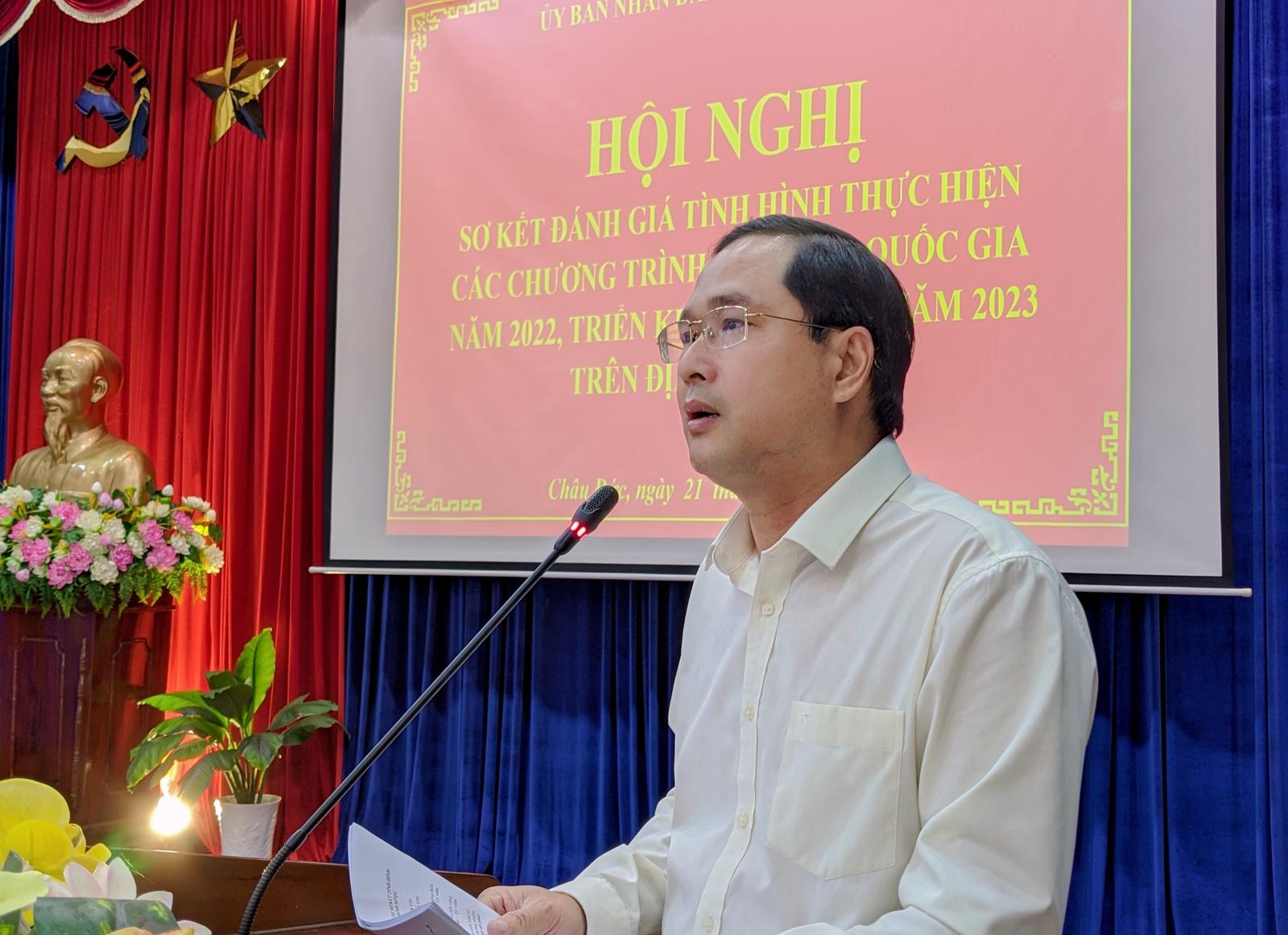 Chủ tịch huyện Châu Đức, ông Nguyễn Tấn Bản phát biểu tại Hội nghị Sơ kết đánh giá tình hình thực hiện các chương trình mục tiêu quốc gia năm 2022, triển khai nhiệm vụ năm 2023, tại UBND huyện Châu Đức. Ảnh: Thúy Hạnh