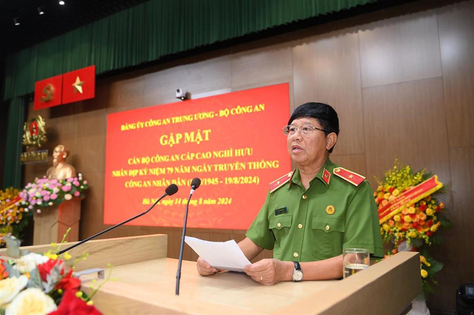 Thay mặt các thế hệ tướng lĩnh, sĩ quan, anh hùng lực lượng vũ trang Nhân dân phát biểu tại buổi gặp mặt, Thiếu tướng Vũ Hùng Vương, Phó Chủ tịch Thường trực Hội Cựu CAND, khẳng định, các thế hệ công an hưu trí trong những năm qua luôn được Đảng ủy CATW, lãnh đạo Bộ Công an quan tâm chỉ đạo, các cấp ủy và công an các cấp luôn quan tâm xây dựng, củng cố Hội Cựu CAND, chăm lo chế độ, chính sách và hỗ trợ khó khăn cho cán bộ công an hưu trí, thân nhân liệt sĩ, thương binh và người có công trong lực lượng CAND.