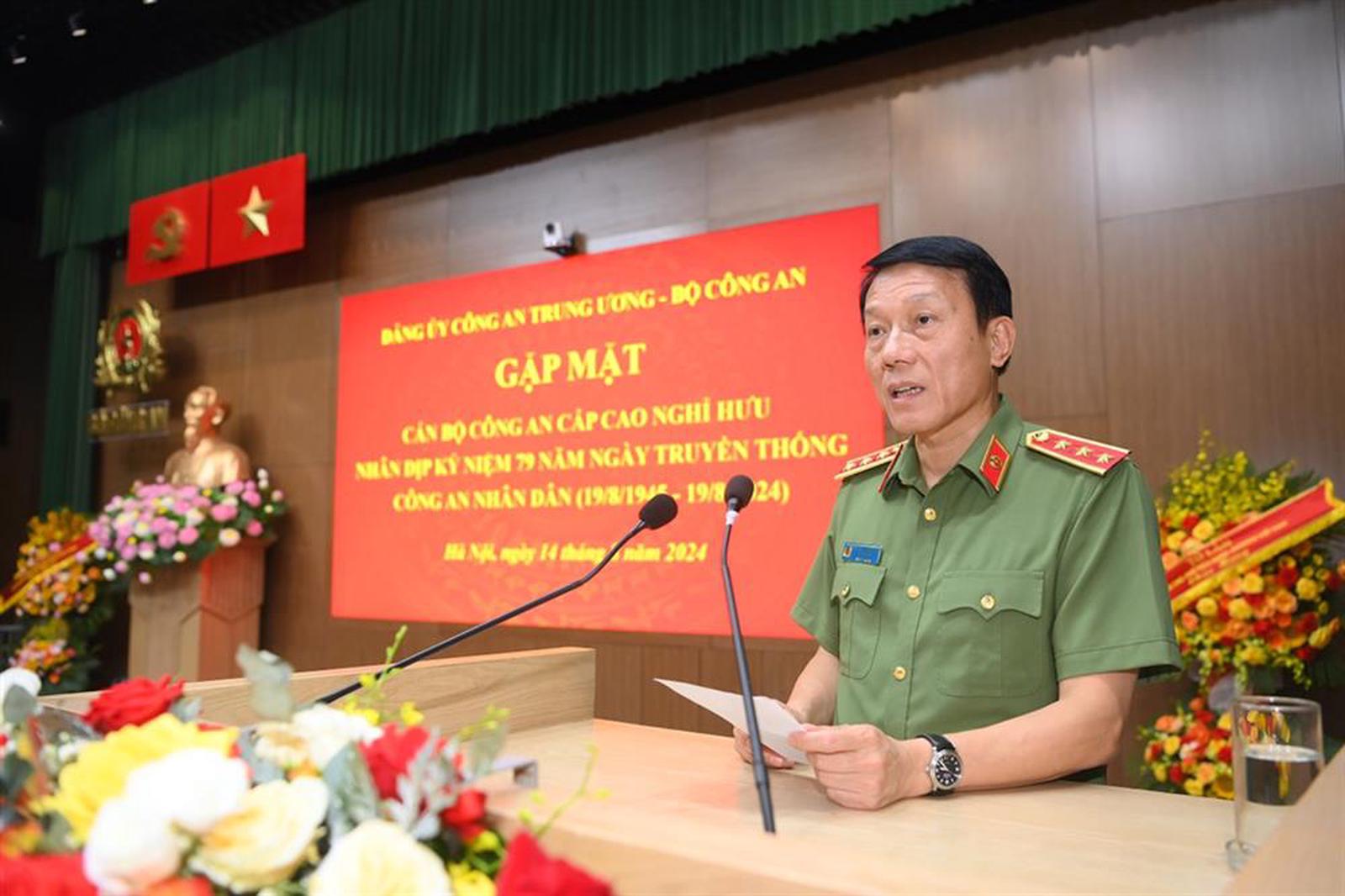 Bộ trưởng Bộ Công an Lương Tam Quang phát biểu tại buổi gặp mặt. Ảnh nguồn: Bocongan.gov.vn