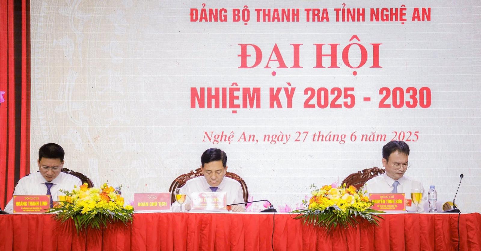 (Thanh tra) - Chiều 27/6, Đảng bộ Thanh tra tỉnh Nghệ An tổ chức Đại hội Đảng bộ lần thứ nhất, nhiệm kỳ nhiệm kỳ 2025 - 2030. Ông Chu Thế Huyền, Bí thư Đảng ủy, Chánh Thanh tra tỉnh Nghệ An được chỉ định giữ chức Bí thư Đảng ủy Thanh tra tỉnh nhiệm kỳ 2025 - 2030. Ông Nguyễn Tùng Sơn, Phó Chánh Thanh tra tỉnh được chỉ định giữ chức Phó Bí thư Đảng ủy. Ông Trần Ngọc Hải Trưởng phòng I được chỉ định giữ chức Ủy viên Ban Thường vụ, Chủ nhiệm Ủy ban Kiểm tra Đảng ủy.
