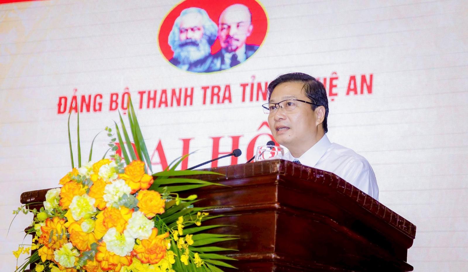 Phát biểu chỉ đạo tại Đại hội, ông Lê Hồng Vinh - Phó Bí thư Tỉnh ủy, Bí thư Đảng ủy UBND tỉnh, Chủ tịch UBND tỉnh Nghệ An ghi nhận, biểu dương, chúc mừng những thành tích mà Đảng bộ Thanh tra tỉnh đã đạt được trong nhiệm kỳ qua.