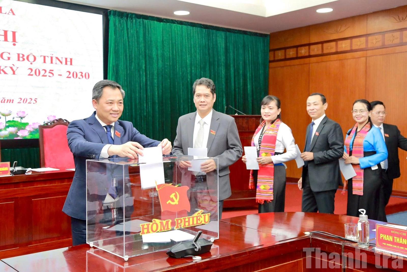 Các đại biểu tham gia bỏ biếu bầu các chức danh chủ chốt của Tỉnh ủy Sơn La nhiệm kỳ 2025 - 2030. Ảnh: ND