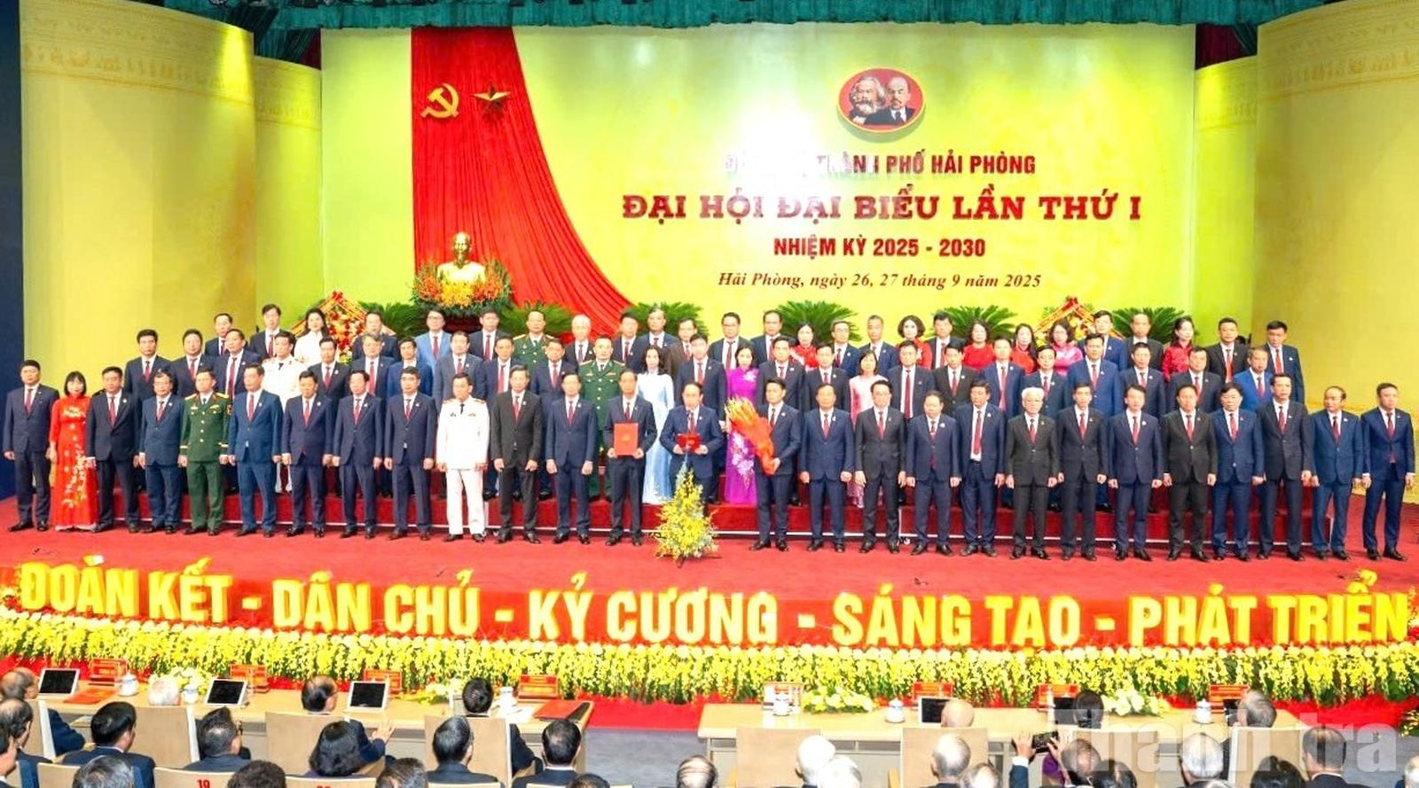 Ban Chấp hành Đảng bộ thành phố Hải Phòng nhiệm kỳ 2025 - 2030 ra mắt đại hội. Ảnh: PV