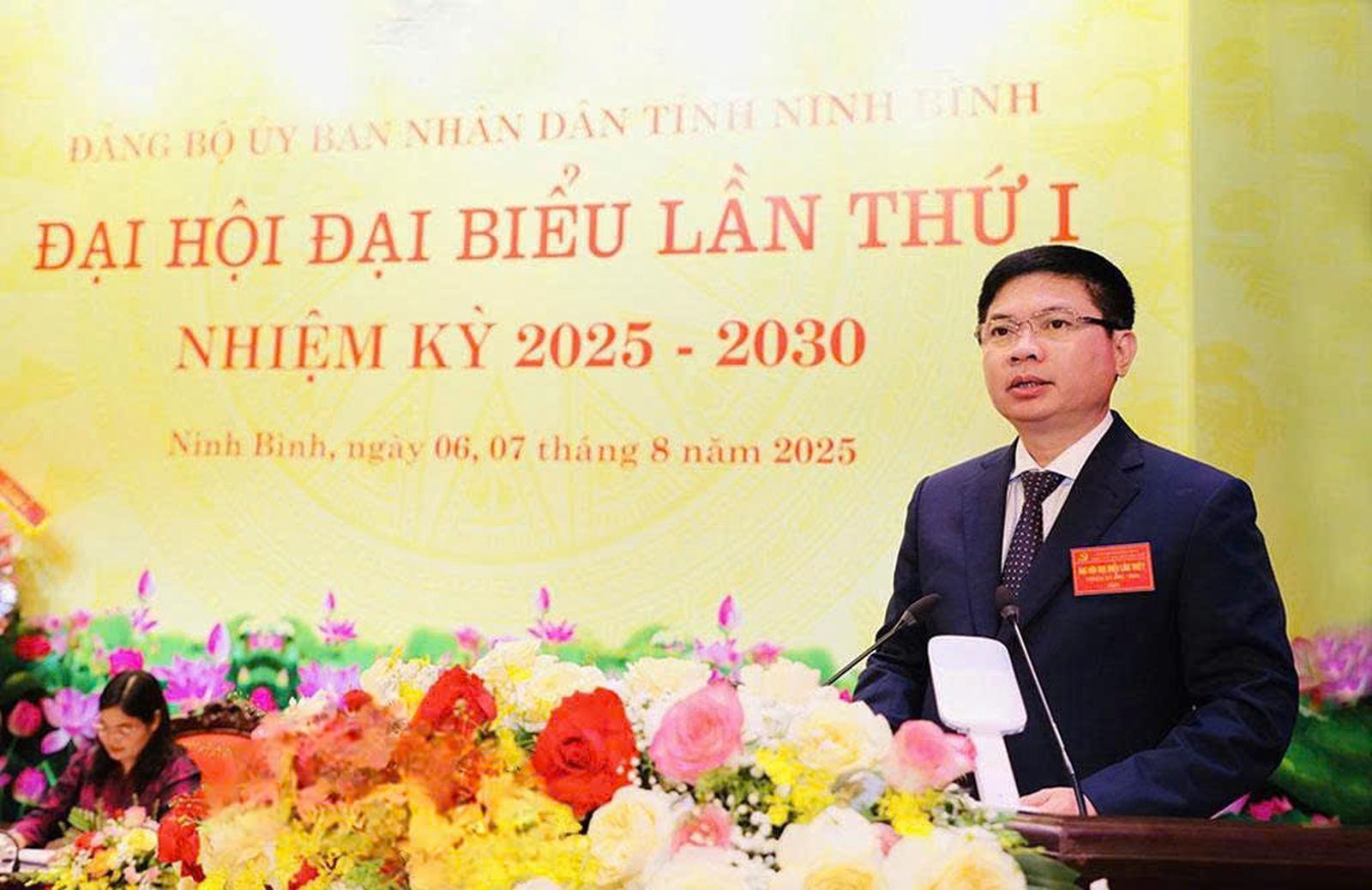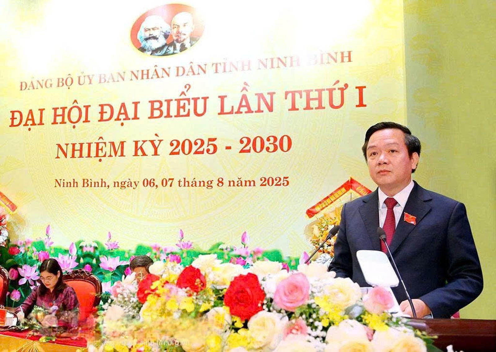 (Thanh tra) - Ngày 7/8/2025, Đảng bộ UBND tỉnh Ninh Bình trang trọng tổ chức phiên chính thức Đại hội đại biểu lần thứ I, nhiệm kỳ 2025-2030 với chủ đề “Đoàn kết - Trách nhiệm - Kỷ cương - Đột phá - Phát triển”, Bí thư Tỉnh ủy Trương Quốc Huy dự, chỉ đạo Đại hội.