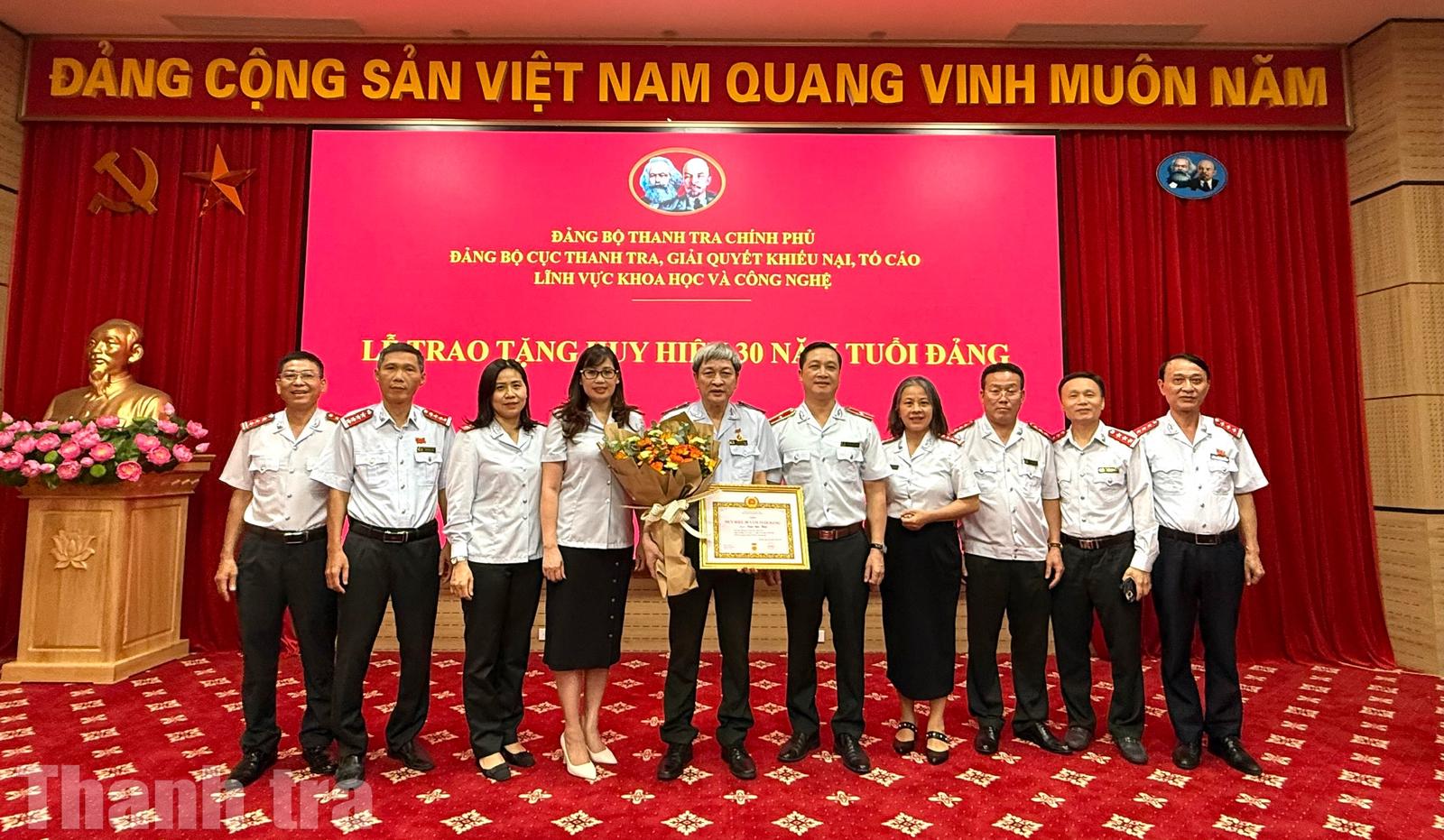 (Thanh tra) - Chiều ngày 28/8, Đảng bộ Cục Thanh tra, Giải quyết khiếu nại, tố cáo lĩnh vực Khoa học và Công nghệ đã (Cục XII) đã trao Huy hiệu 30 năm tuổi Đảng cho đảng viên Trần Đức Thái.