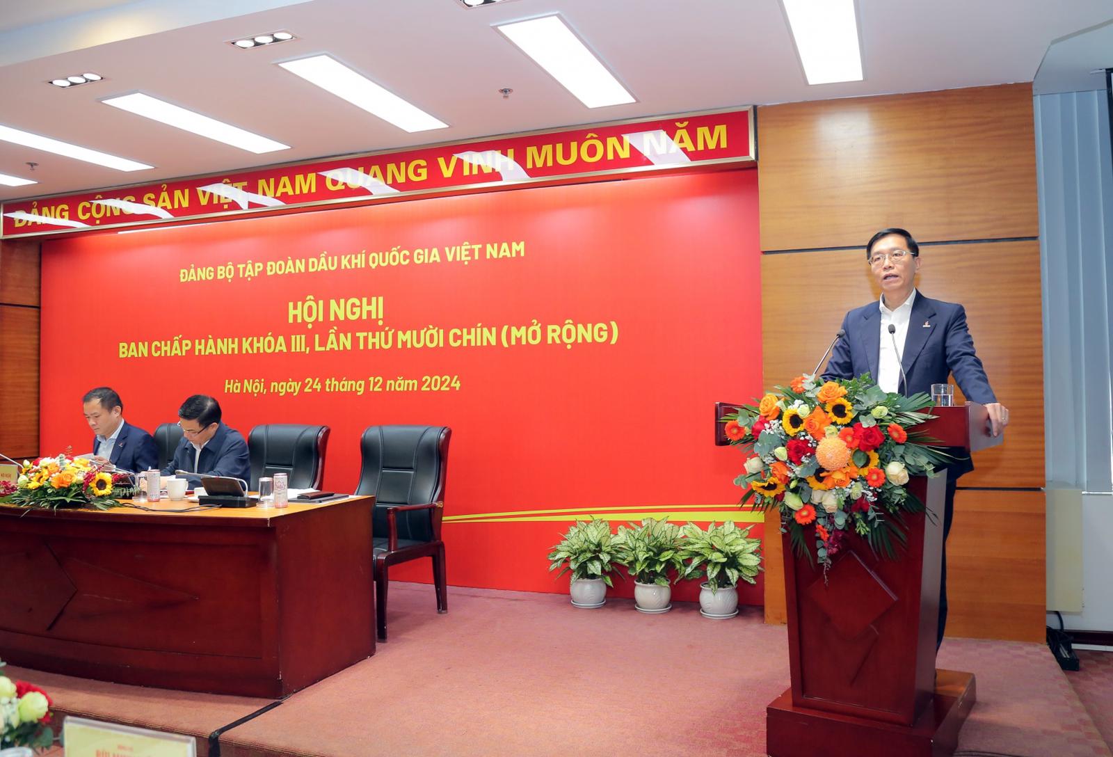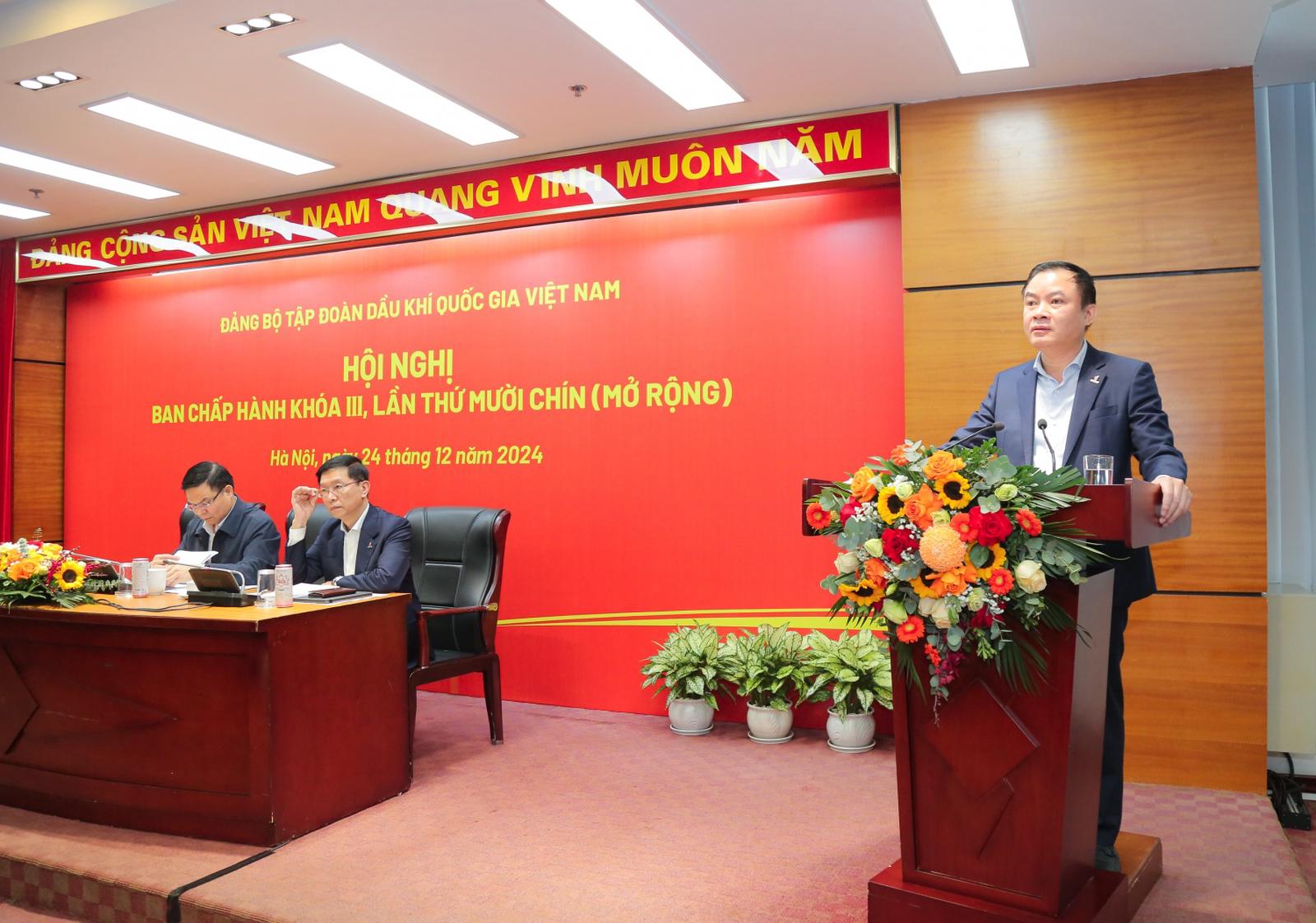 Báo cáo về công tác xây dựng Đảng, đồng chí Trần Quang Dũng, Phó Bí thư thường trực Đảng ủy Tập đoàn nhấn mạnh, trong năm 2024, Đảng bộ Tập đoàn đã đạt được nhiều kết quả nổi bật. Theo đó, căn cứ thực tiễn của Tập đoàn, Đảng ủy/Ban Thường vụ Đảng ủy Tập đoàn đã chỉ đạo rà soát, điều chỉnh một số chỉ tiêu, nhiệm vụ của nhiệm kỳ phù hợp với Nghị quyết Trung ương 5, khóa XIII và Quyết định của Thủ tướng Chính phủ về cơ cấu lại Tập đoàn Dầu khí Việt Nam. Đồng thời, ban hành Nghị quyết lãnh đạo thực hiện nhiệm vụ và Chương trình công tác năm 2024, Nghị quyết giao nhiệm vụ trọng tâm cần ưu tiên, tập trung lãnh đạo thực hiện cho cấp ủy, người đứng đầu cấp ủy, doanh nghiệp, đơn vị, cụ thể hóa các nghị quyết, chỉ thị, chương trình, kế hoạch... của Trung ương và Đảng ủy Khối để lãnh đạo, chỉ đạo thực hiện toàn diện các mặt công tác, phù hợp với tình hình thực tiễn của Tập đoàn.