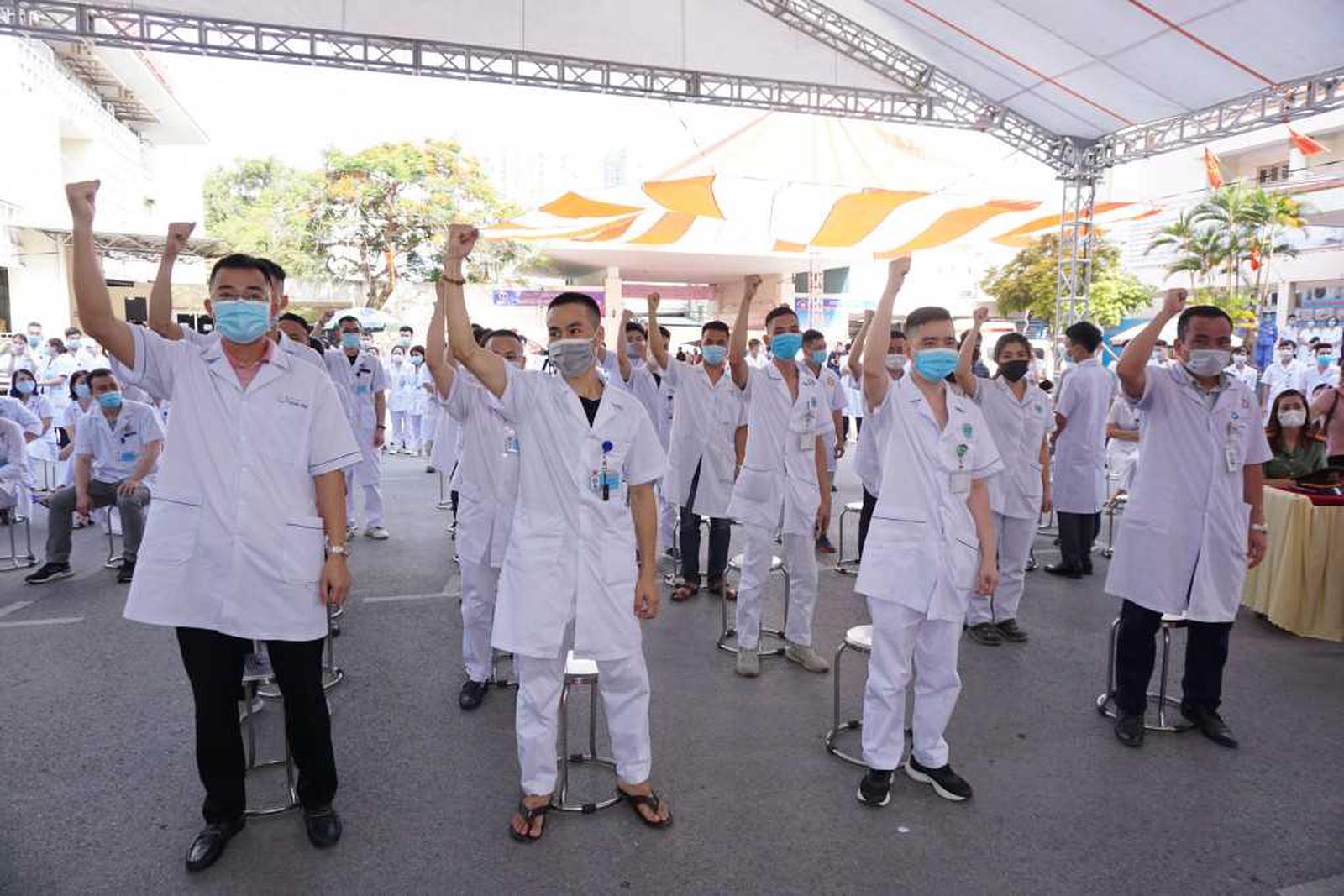 Cán bộ, y, bác sĩ của Quảng Ninh với quyết tâm cao lên đường hỗ trợ tỉnh Bắc Giang phòng, chống dịch. Ảnh: TTTT