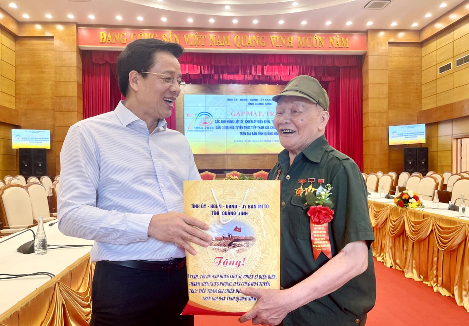 Chủ tịch UBND tỉnh Quảng Ninh Cao Tường Huy tặng quà cho các chiến sỹ Điện Biên, TNXP, dân công hỏa tuyến, thân nhân của các Anh hùng liệt sỹ trực tiếp tham gia chiến dịch Điện Biên Phủ. Ảnh: TTTT