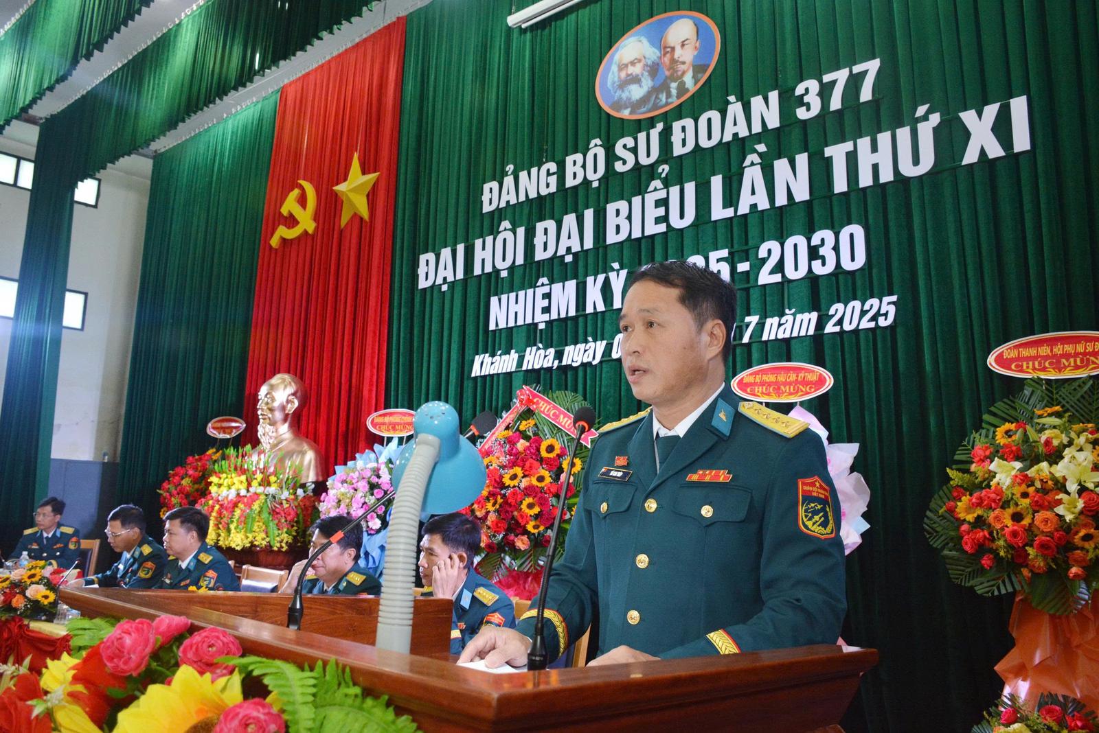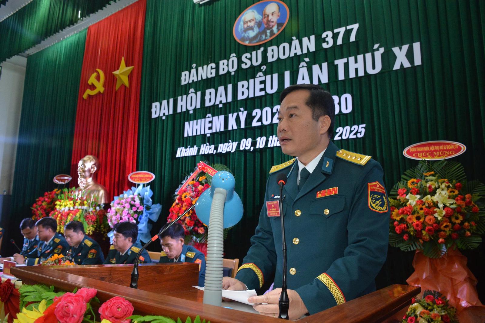 Phát biểu chỉ đạo Đại hội, Đại tá Nguyễn Huy Tuấn đã biểu dương những kết quả ấn tượng mà Đảng ủy Sư đoàn 377 đạt được trong nhiệm kỳ 2020-2025. Đồng thời, ông cũng yêu cầu trong nhiệm kỳ 2025-2030, Đảng ủy Sư đoàn cần tiếp tục giáo dục nâng cao nhận thức, trách nhiệm cho cán bộ, chiến sĩ về thực hiện nhiệm vụ; duy trì nền nếp canh trực, SSCĐ, QLVT; huấn luyện làm chủ trang bị kỹ thuật mới, cải tiến; nâng cao chất lượng XDCQ, QLKL, bảo đảm an toàn trong mọi hoạt động.