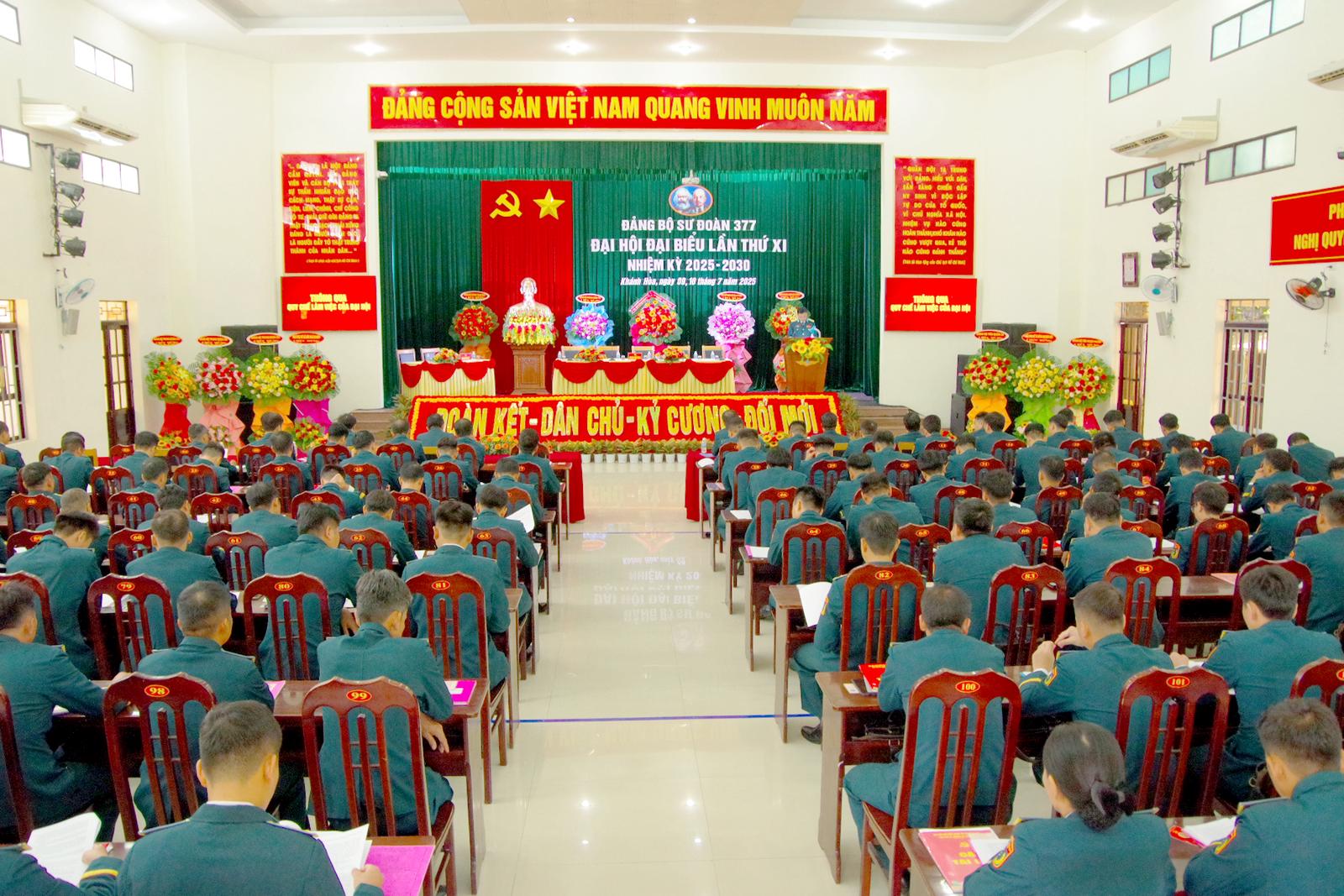Bước sang nhiệm kỳ 2025-2030, Đảng bộ Sư đoàn 377 xác định mục tiêu trọng tâm là nâng cao năng lực lãnh đạo, sức chiến đấu, xây dựng Đảng bộ trong sạch, vững mạnh tiêu biểu, và xây dựng Sư đoàn vững mạnh toàn diện "Mẫu mực, tiêu biểu". Các nhiệm vụ cụ thể được nhấn mạnh bao gồm: Nâng cao trình độ và khả năng SSCĐ, QLVT, huấn luyện; Tăng cường xây dựng chính quy, quản lý kỷ luật (XDCQ, QLKL); Thực hiện tốt cải cách hành chính, đẩy mạnh chuyển đổi số; Xây dựng Sư đoàn cách mạng, chính quy, tinh nhuệ, hiện đại; Quản lý và bảo vệ vững chắc vùng trời được giao, không để bị động, bất ngờ, lỡ thời cơ, đặc biệt là trên hướng biển, đảo.
