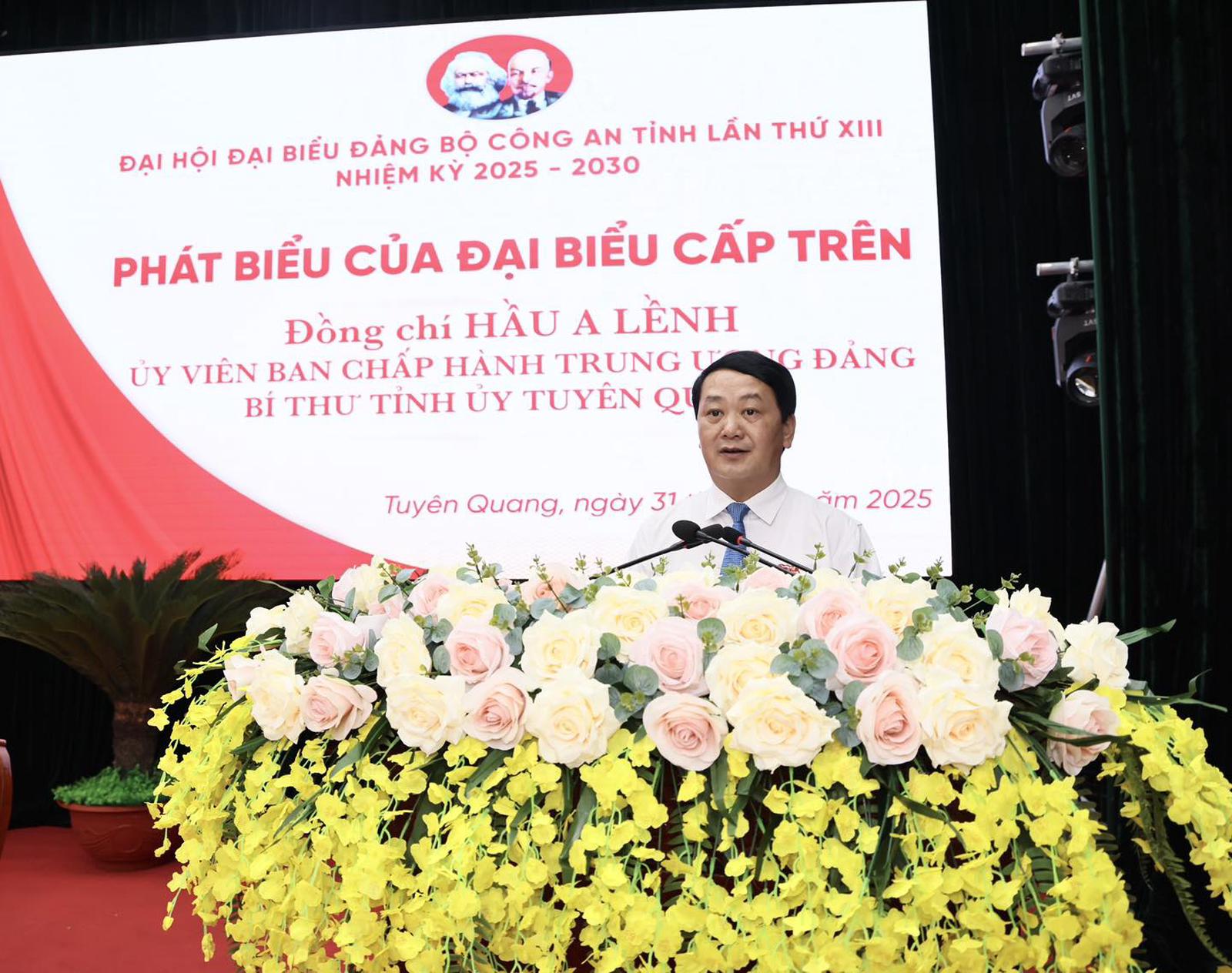 Phát biểu tại Đại hội, Bí thư Tỉnh uỷ Tuyên Quang Hầu A Lềnh khẳng định, những thành tích xuất sắc của lực lượng Công an Tuyên Quang đã góp phần xây dựng xã hội kỷ cương, tạo môi trường an ninh, an toàn, lành mạnh, cùng Đảng bộ và Nhân dân trong tỉnh thực hiện thắng lợi Nghị quyết Đại hội Đảng bộ tỉnh nhiệm kỳ 2020-2025.