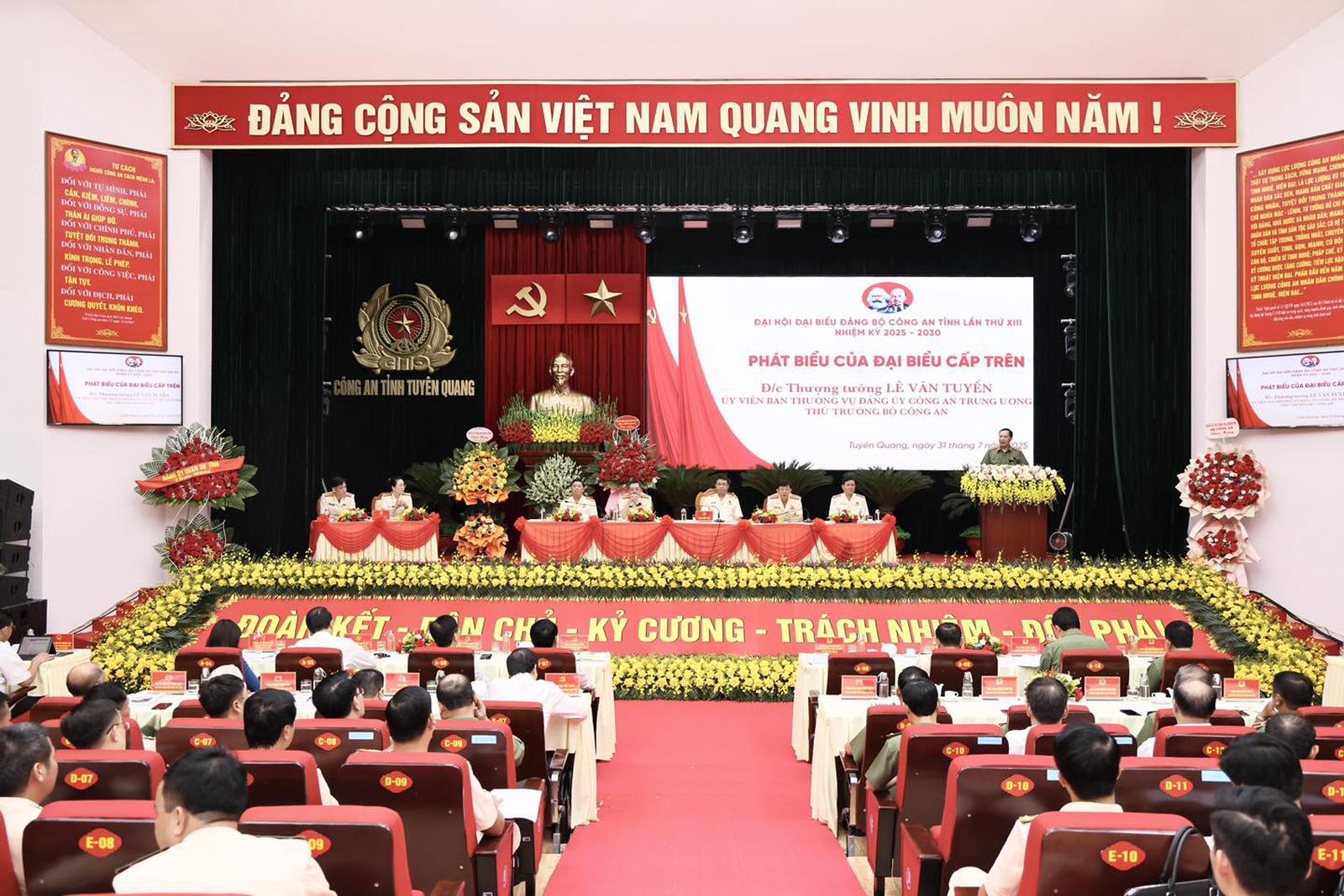 Thay mặt Đảng uỷ Công an Trung ương, lãnh đạo Bộ Công an, Thượng tướng, Thứ trưởng Bộ Công an Lê Văn Tuyến chúc mừng và biểu dương những kết quả, thành tích mà Đảng bộ Công an tỉnh Tuyên Quang đạt được trong nhiệm kỳ. Đồng chí Thứ trưởng yêu cầu Đảng bộ Công an tỉnh khẩn trương ban hành Quy chế làm việc, đảm bảo chi tiết, cụ thể, phân công rõ người rõ việc cho từng đồng chí ủy viên Ban Chấp hành Đảng bộ.