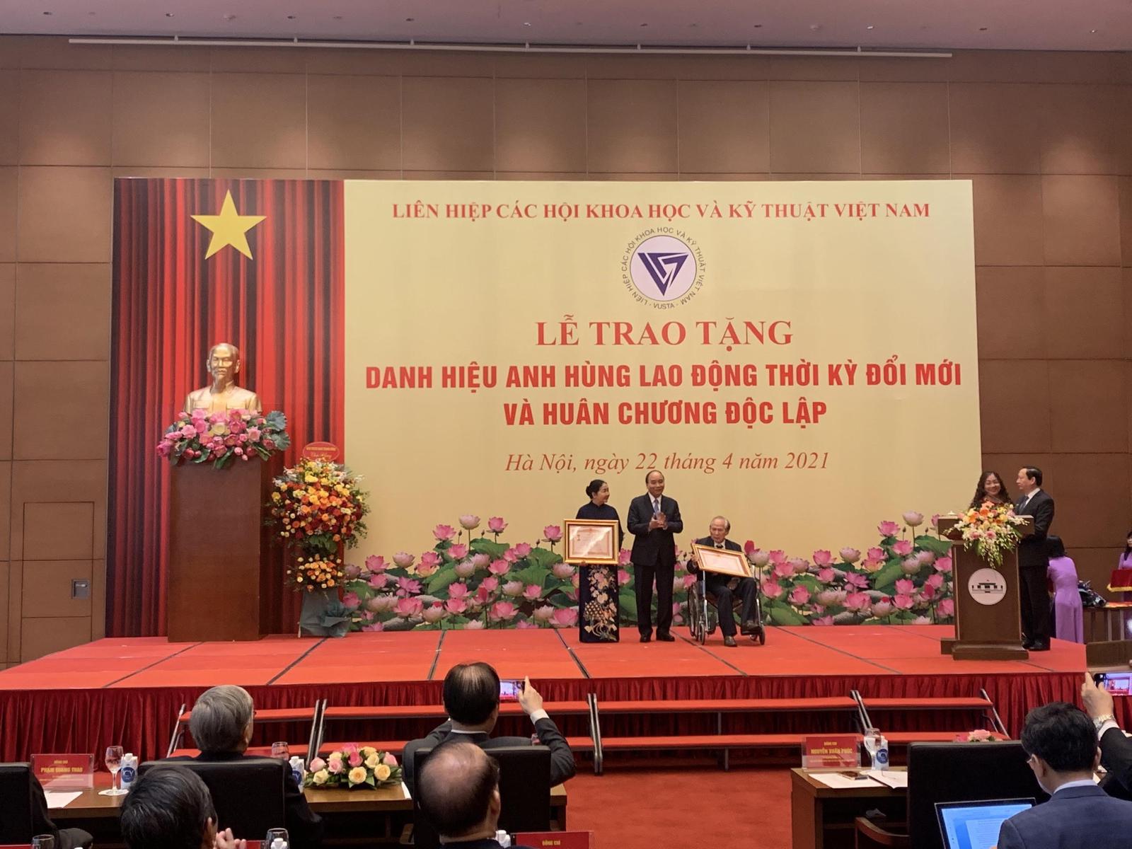 Sáng 22/4/2021, tại Nhà Quốc hội, Liên hiệp Các Hội Khoa học và Kỹ thuật Việt Nam đã tổ chức lễ truy tặng danh hiệu Anh hùng Lao động cho cố GS.VS Vũ Tuyên Hoàng, nguyên Chủ tịch Liên hiệp Các Hội Khoa học và Kỹ thuật Việt Nam; trao tặng danh hiệu Anh hùng Lao động cho GS Hoàng Chương, Viện trưởng Viện Nghiên cứu, Bảo tồn và Phát huy văn hóa dân tộc; trao tặng Huân chương Độc lập hạng Ba cho TSKH Nghiêm Vũ Khải, TS Phan Tùng Mậu và TS Phạm Văn Tân trước sự chứng kiến của nhiều nhà khoa học, nhân sĩ, báo giới và thân nhân của các nhà khoa học được nhận thưởng.