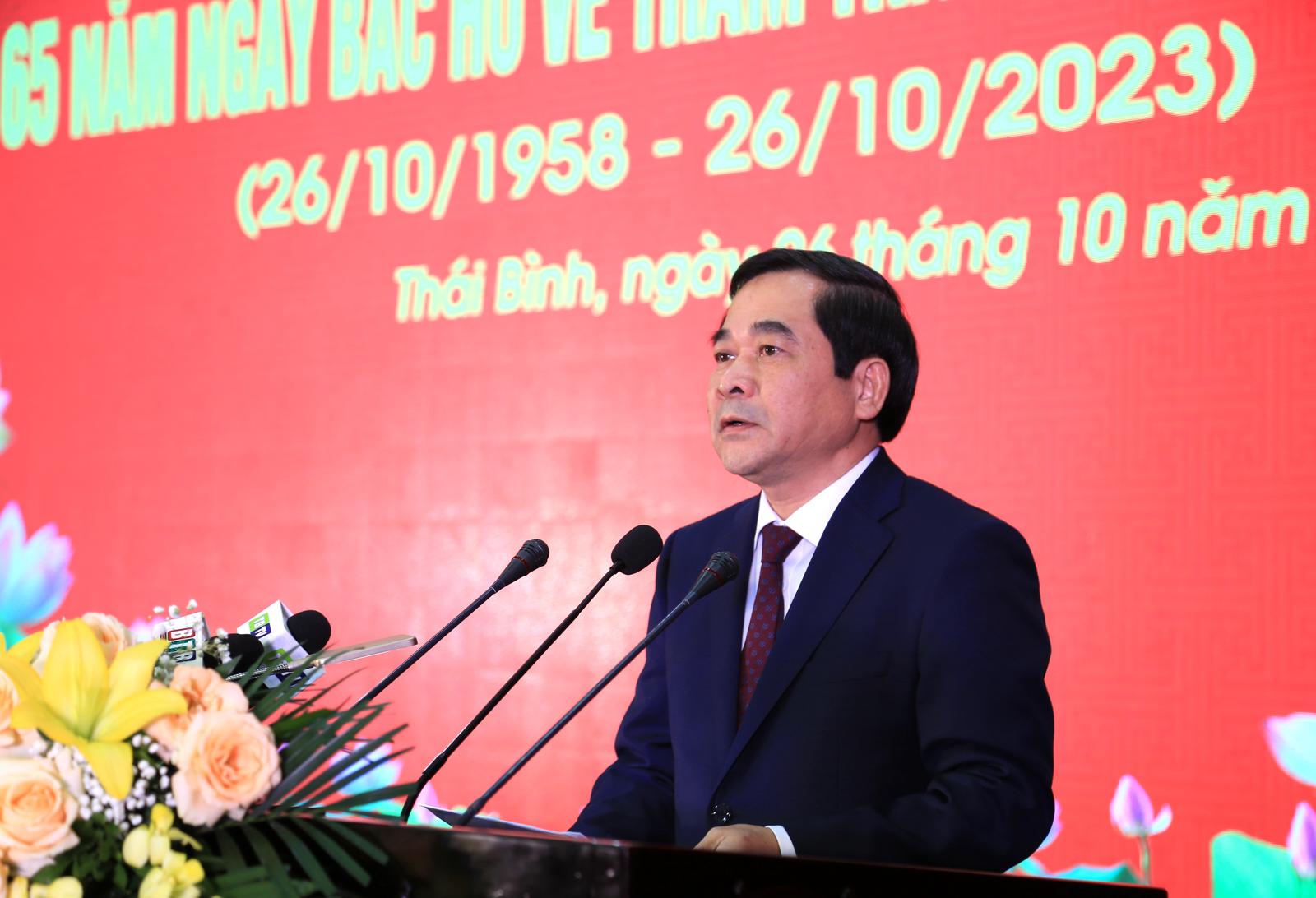Trình bày diễn văn ôn lại mốc son lịch sử quan trọng Bác Hồ về thăm Thái Bình lần thứ ba, Phó Bí thư Thường trực Tỉnh ủy Thái Bình Nguyễn Tiến Thành nhấn mạnh, sinh thời, Chủ tịch Hồ Chí Minh luôn quan tâm đến phong trào cách mạng của địa phương; trong đó, có phong trào cách mạng Thái Bình…