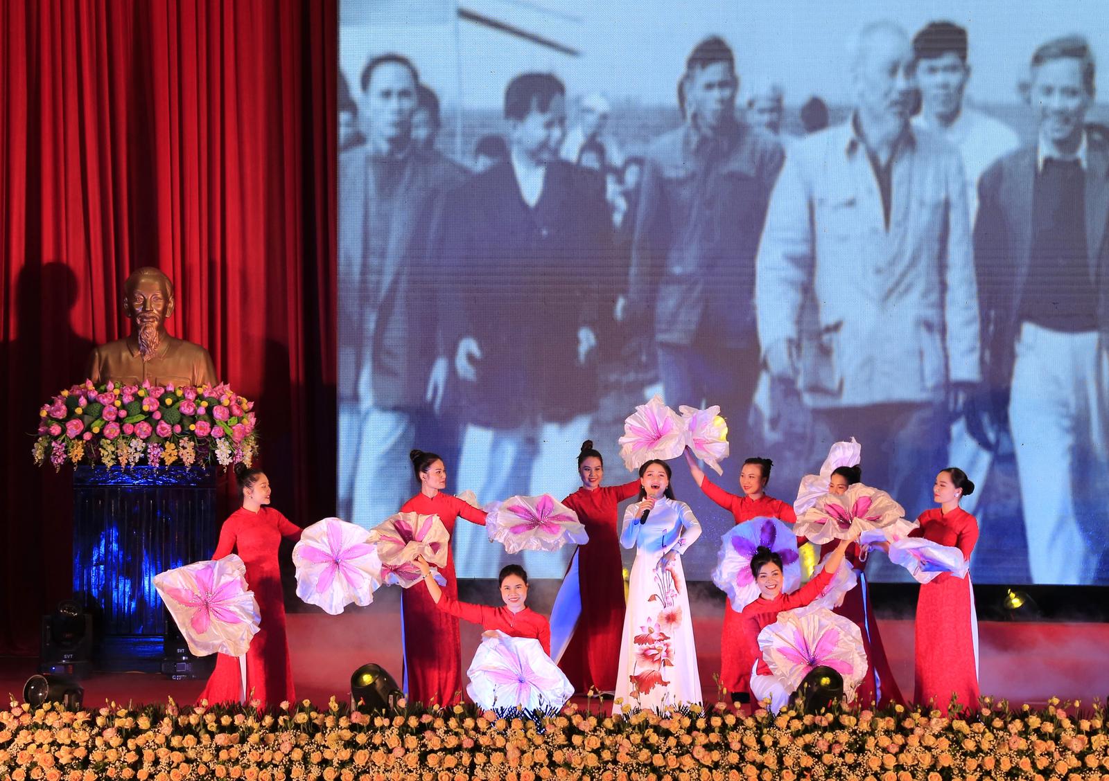 Tại lễ kỷ niệm đã diễn ra chương trình nghệ thuật đặc sắc thể hiện tình yêu của nhân dân Việt Nam nói chung và tỉnh Thái Bình nói riêng với Bác. Ảnh: Trọng Tài