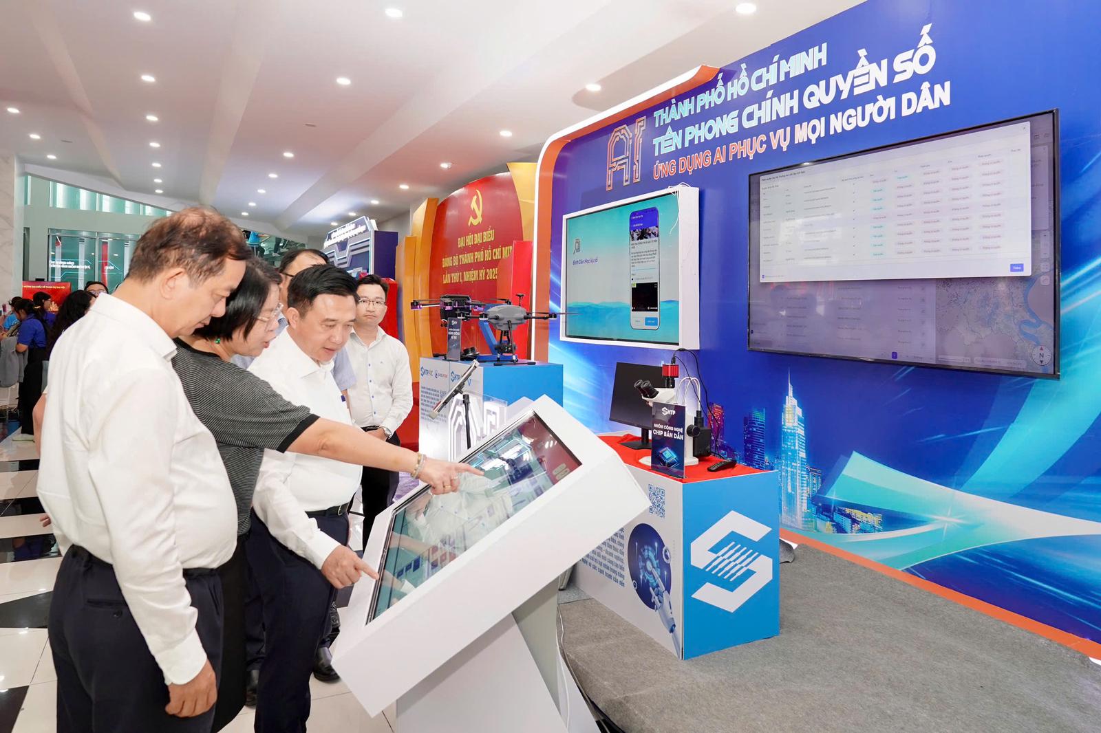 Triển lãm “Đảng bộ Thành phố Hồ Chí Minh - Tự tin, vững vàng bước vào kỷ nguyên mới, kỷ nguyên vươn mình của dân tộc” nêu rõ các thành tựu của nhiệm kỳ 2020-2025. Ảnh: PV