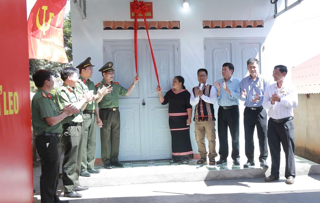 Công an tỉnh Đắk Lắk phối hợp với Huyện ủy, UBND huyện Ea H’leo tổ chức lễ bàn giao nhà Tình nghĩa tặng hộ gia đình bà Rơ Âu H’hra. Ảnh: VT