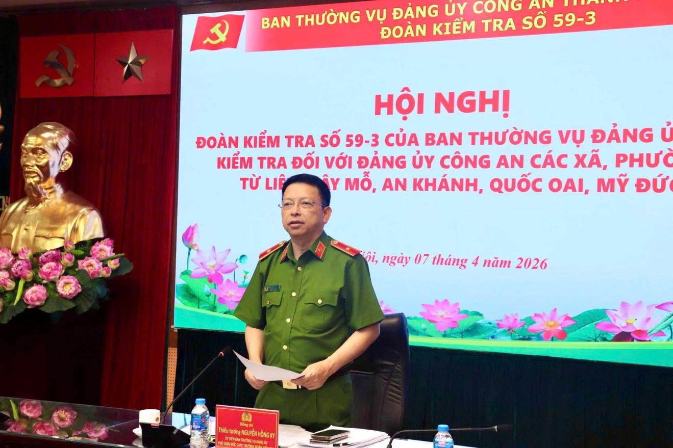 Ngày 7/4, Đoàn kiểm tra số 59-3 của Ban Thường vụ Đảng ủy Công an TP Hà Nội do Thiếu tướng Nguyễn Hồng Ky, Ủy viên Ban Thường vụ Đảng ủy, Phó Giám đốc Công an TP Hà Nội làm Trưởng đoàn đã tổ chức Hội nghị triển khai kiểm tra đối với Đảng ủy Công an các xã, phường: Từ Liêm, Tây Mỗ, An Khánh, Quốc Oai, Mỹ Đức.