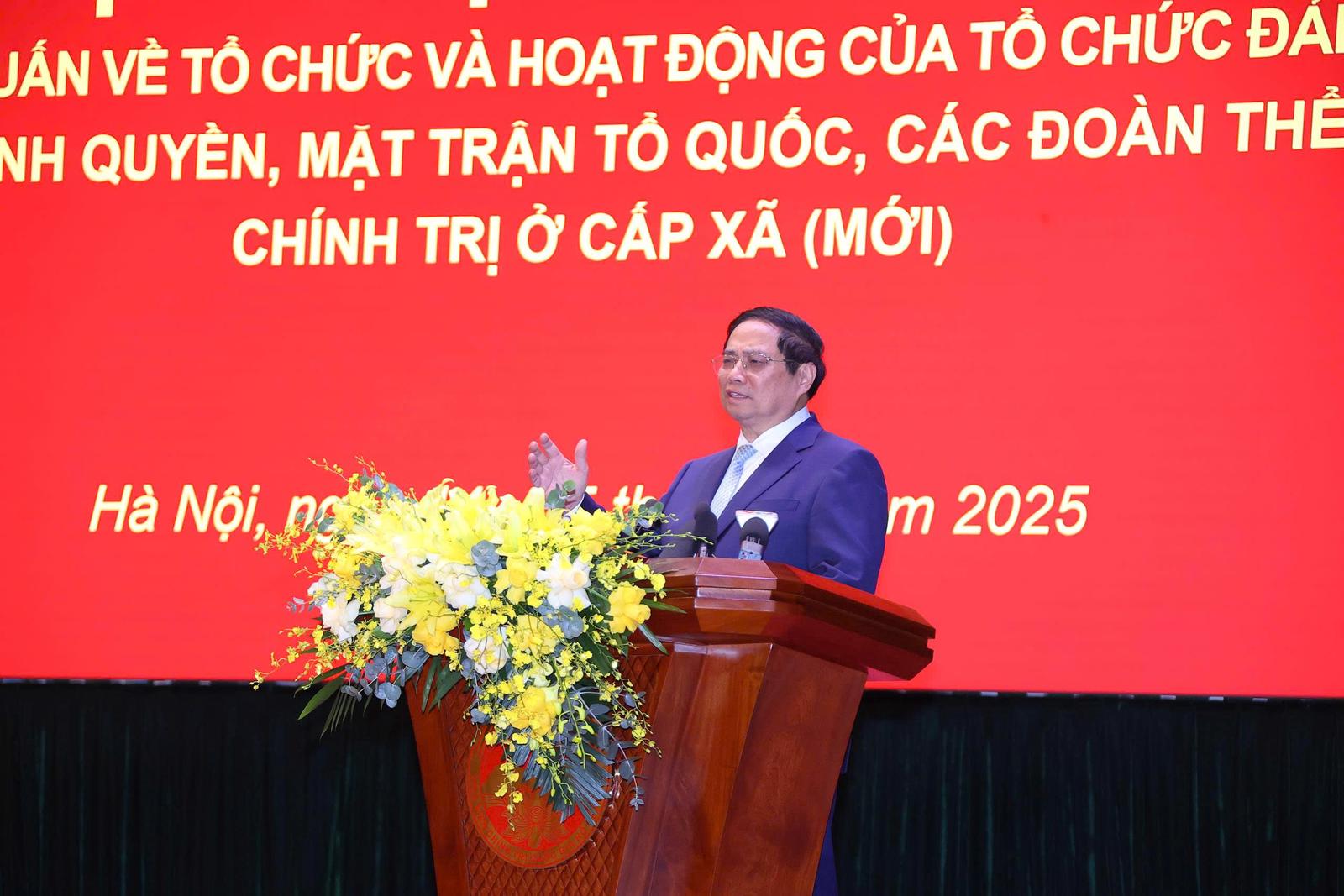 Tại Hội nghị tập huấn chuyên môn, nghiệp vụ liên quan đến công tác tổ chức xây dựng Đảng, quản lý nhà nước, tổ chức và hoạt động của Mặt trận Tổ quốc, các đoàn thể chính trị ở cấp xã (mới) được tổ chức trực tiếp, trực tuyến trên cả nước trong 2 ngày 14-15/6, Thủ tướng Chính phủ Phạm Minh Chính đã nhấn mạnh và lưu ý một số nội dung trong triển khai thực hiện.