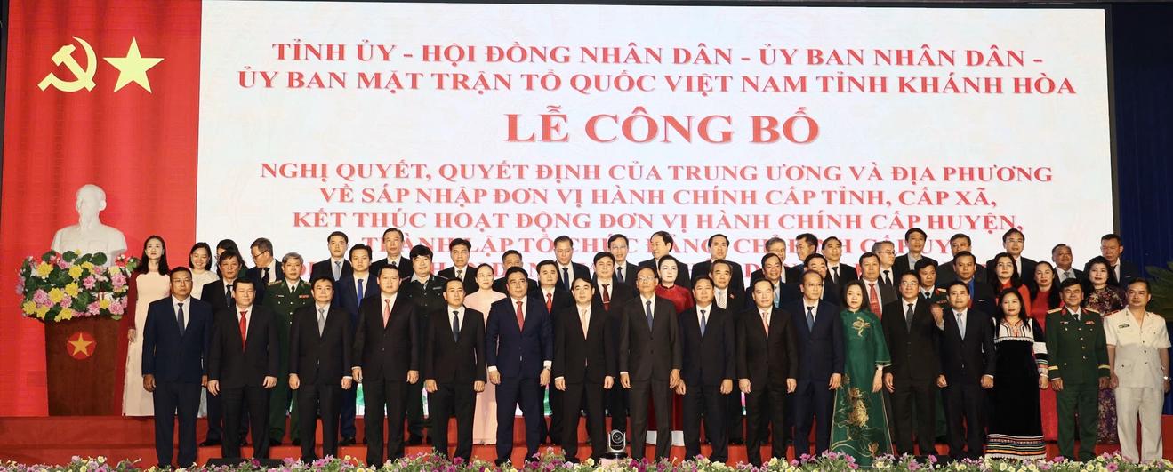 Tại buổi lễ, Phó Chủ nhiệm Văn phòng Quốc hội Nguyễn Mạnh Hùng đã công bố Nghị quyết số 202 của Quốc hội về việc sắp xếp đơn vị hành chính cấp tỉnh, được thông qua ngày 12/6/2025; Nghị quyết số 1667 của Ủy ban Thường vụ Quốc hội về sắp xếp đơn vị hành chính cấp xã của tỉnh Khánh Hòa năm 2025, được thông qua ngày 16/6/2025. Theo đó, từ ngày 1/7/2025, tỉnh Ninh Thuận và tỉnh Khánh Hòa sáp nhập thành tỉnh Khánh Hòa mới với diện tích 8.555,86km2; dân số hơn 2,24 triệu người. Sau sắp xếp, tỉnh Khánh Hòa có 65 đơn vị hành chính cấp xã (48 xã, 16 phường, 1 đặc khu), giảm 129 đơn vị hành chính cấp xã, đạt tỷ lệ 66,49%.