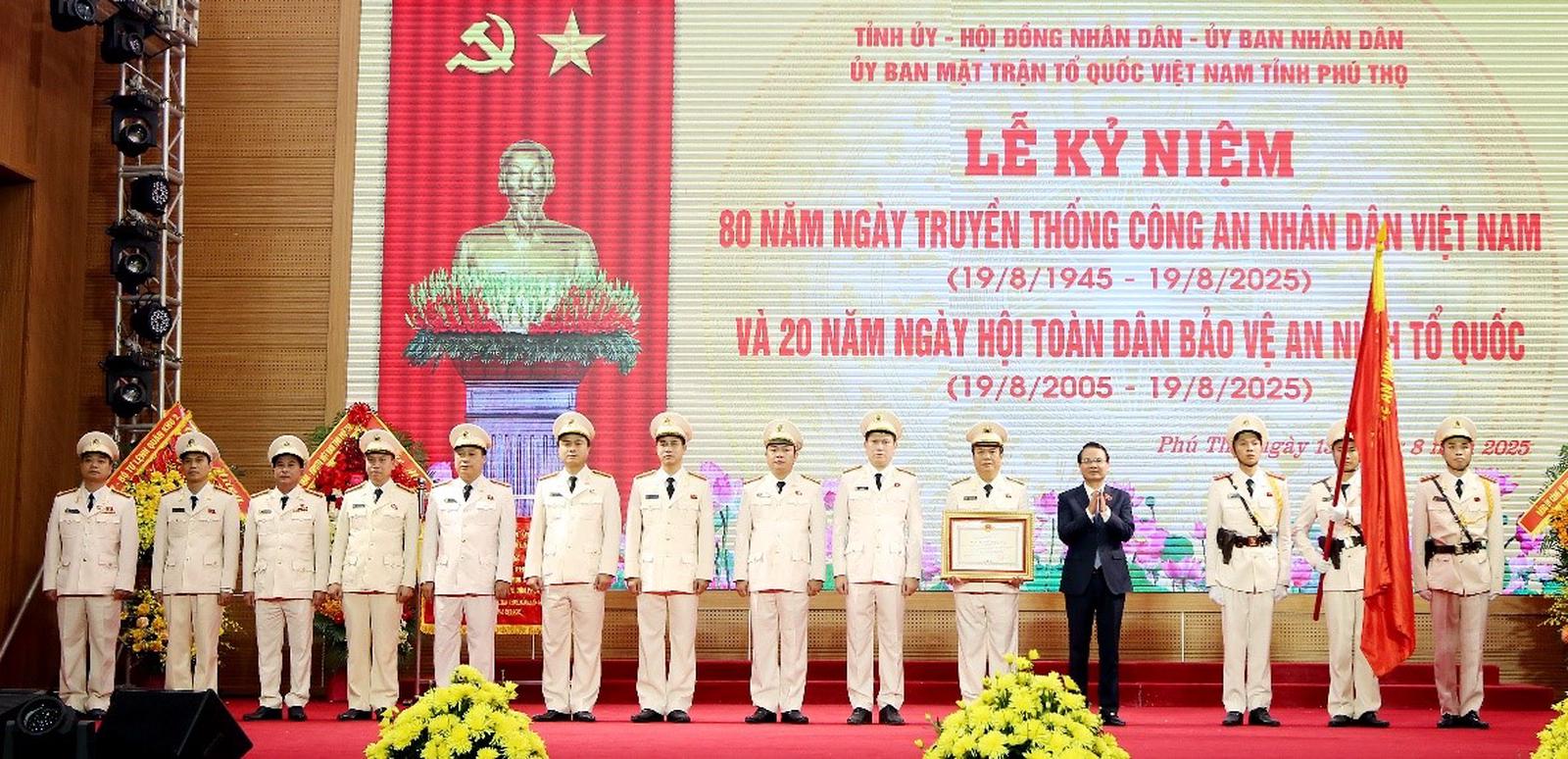 (Thanh tra) - Ngày 15/8, Tỉnh ủy - HĐND - UBND - Ủy ban MTTQ Việt Nam tỉnh Phú Thọ long trọng tổ chức Lễ kỷ niệm 80 năm Ngày truyền thống Công an Nhân dân (19/8/1945 - 19/8/2025) và 20 năm Ngày hội toàn dân bảo vệ an ninh Tổ quốc (19/8/2005 - 19/8/2025).