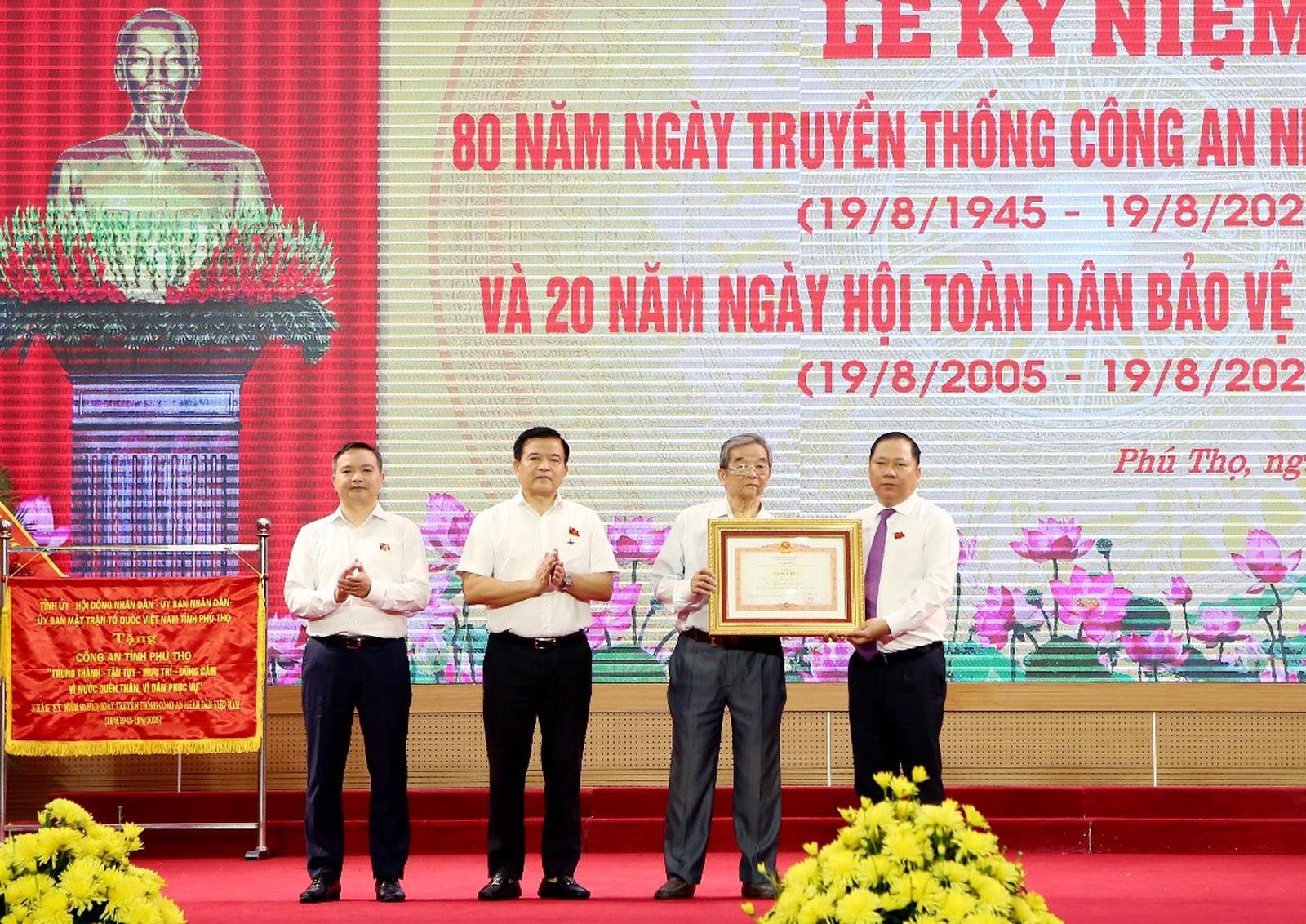Phát biểu chỉ đạo tại buổi lễ, Thượng tướng Nguyễn Văn Long, Thứ trưởng Bộ Công an và Bí thư Tỉnh ủy Phú Thọ Đặng Xuân Phong ghi nhận, biểu dương và chúc mừng những thành tích, chiến công xuất sắc của lực lượng Công an tỉnh Phú Thọ trong suốt chặng đường xây dựng, chiến đấu và trưởng thành; đặc biệt là những kết quả nổi bật trong công tác bảo đảm an ninh chính trị, trật tự an toàn xã hội, xây dựng phong trào toàn dân bảo vệ an ninh Tổ quốc, góp phần giữ vững ổn định chính trị, tạo môi trường an toàn, lành mạnh phục vụ phát triển kinh tế - xã hội của tỉnh.