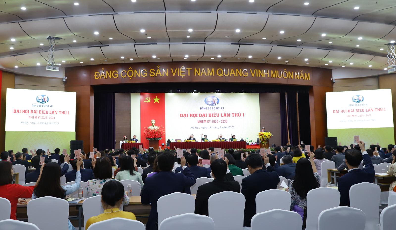 Phát biểu khai mạc phiên họp, Bí thư Đảng ủy, Bộ trưởng Bộ Nội vụ Phạm Thị Thanh Trà cho rằng, Đại hội đại biểu Đảng bộ Bộ Nội vụ lần thứ I, nhiệm kỳ 2025-2030 diễn ra trong bầu không khí phấn khởi của toàn Đảng, toàn dân, toàn quân đang ra sức thi đua lập nhiều thành tích chào mừng kỷ niệm 80 năm Cách mạng tháng Tám và Quốc khánh 2/9, 80 năm thành lập Bộ Nội vụ hướng tới Đại hội đại biểu Đảng bộ Chính phủ nhiệm kỳ 2025-2030 và Đại hội đại biểu toàn quốc lần thứ XIV của Đảng. Trong buổi làm việc sáng ngày 18/8/2025, Đảng bộ Bộ Nội vụ long trọng tổ chức phiên trù bị Đại hội.