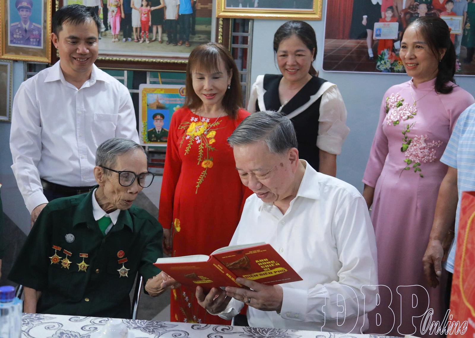 Tổng Bí thư Tô Lâm ân cần hỏi thăm sức khỏe, tình hình đời sống, kinh tế của gia đình; bày tỏ lòng biết ơn sâu sắc với những cống hiến, hy sinh của gia đình chiến sĩ Điện Biên Phạm Văn Ngân nói riêng, các gia đình chính sách và người có công với cách mạng nói chung.