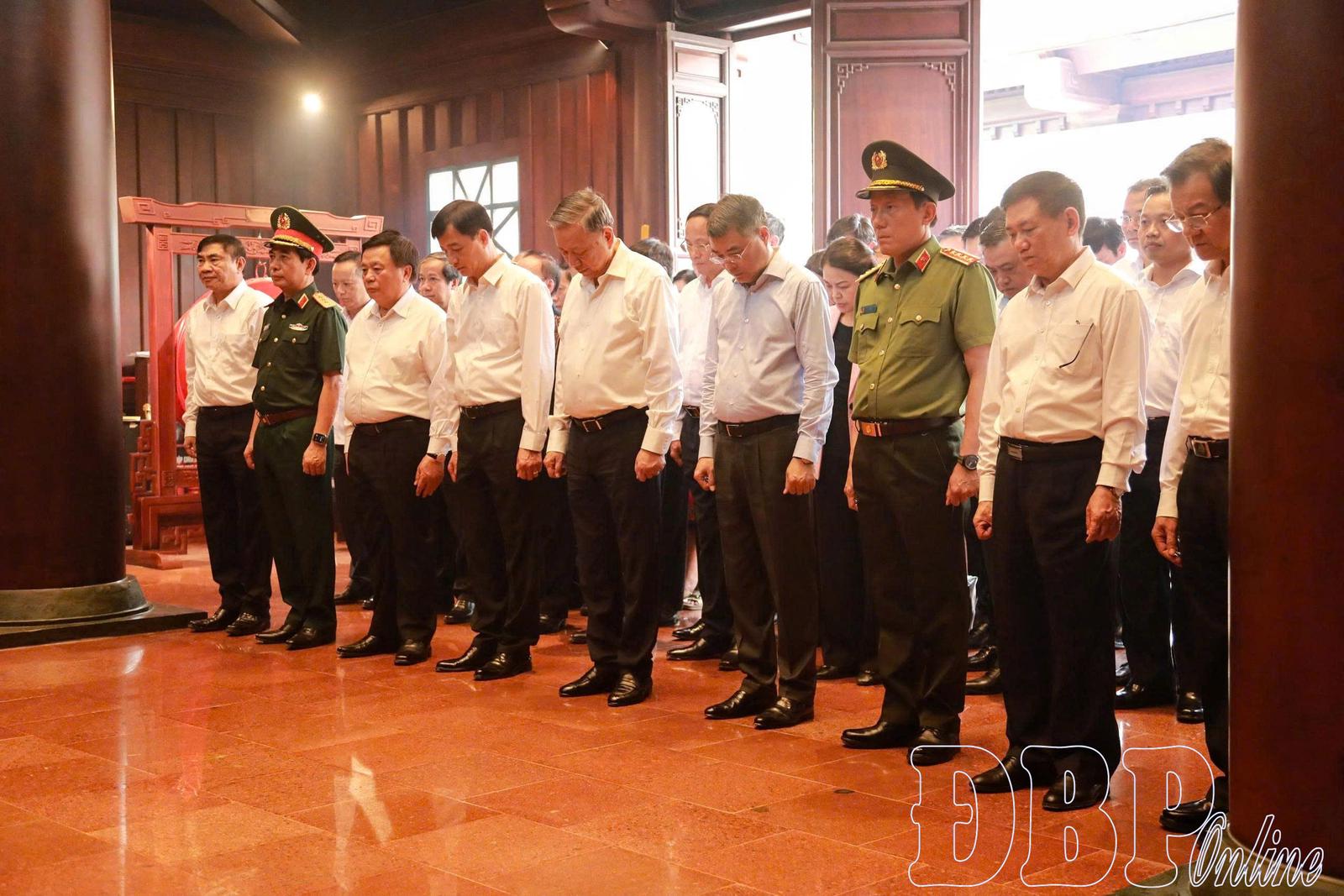 Tại Đền thờ liệt sĩ tại chiến trường Điện Biên Phủ, trong không khí trang nghiêm, thành kính, Tổng Bí thư Tô Lâm và các đại biểu đã dâng hương, dành phút tưởng niệm, bày tỏ sự tri ân sâu sắc đối với công lao to lớn của các Anh hùng, liệt sĩ - những người con ưu tú của dân tộc đã anh dũng chiến đấu, hy sinh vì sự nghiệp giải phóng dân tộc, xây dựng và bảo vệ Tổ quốc.