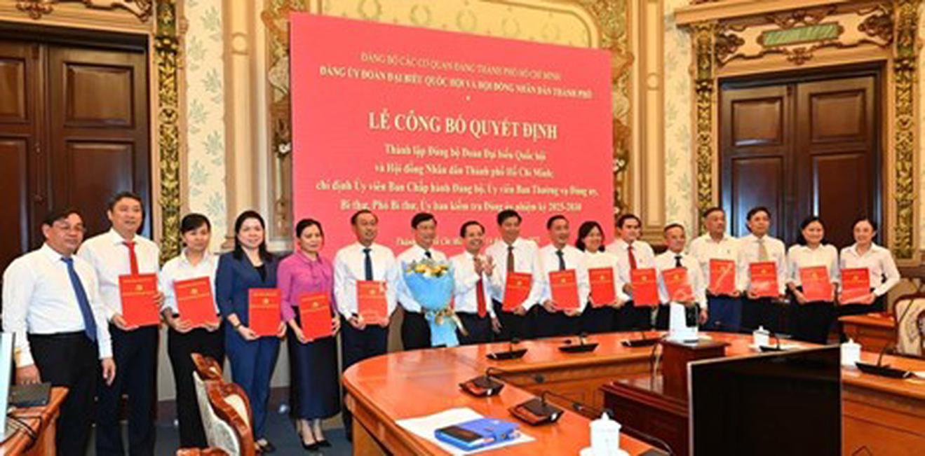 (Thanh tra) - Ngày 14/7, Đảng ủy Đoàn đại biểu Quốc hội và HĐND TP Hồ Chí Minh đã tổ chức lễ công bố các quyết định nhân sự Đảng nhiệm kỳ 2025-2030.