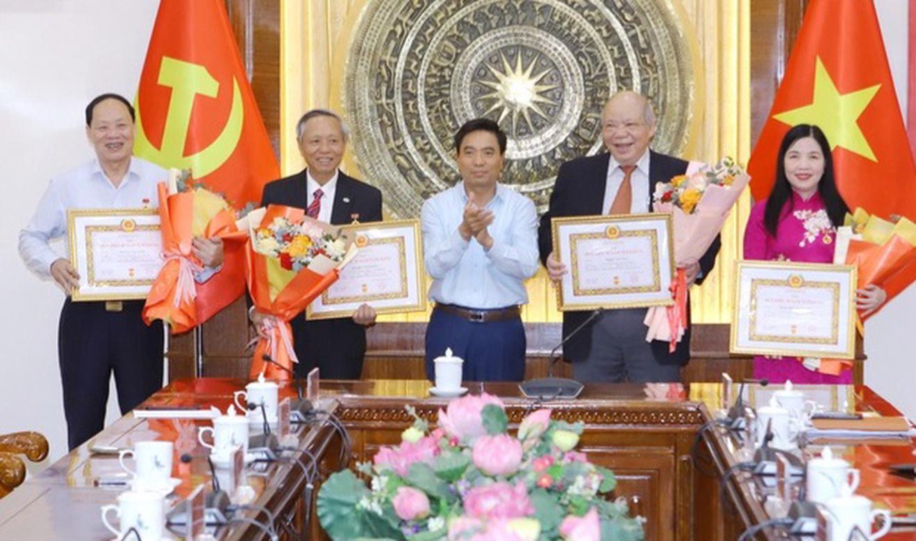 Trao tặng Huy hiệu Đảng cho các đồng chí lãnh đạo và nguyên lãnh đạo tỉnh Thanh Hóa. Ảnh: Minh Hiếu