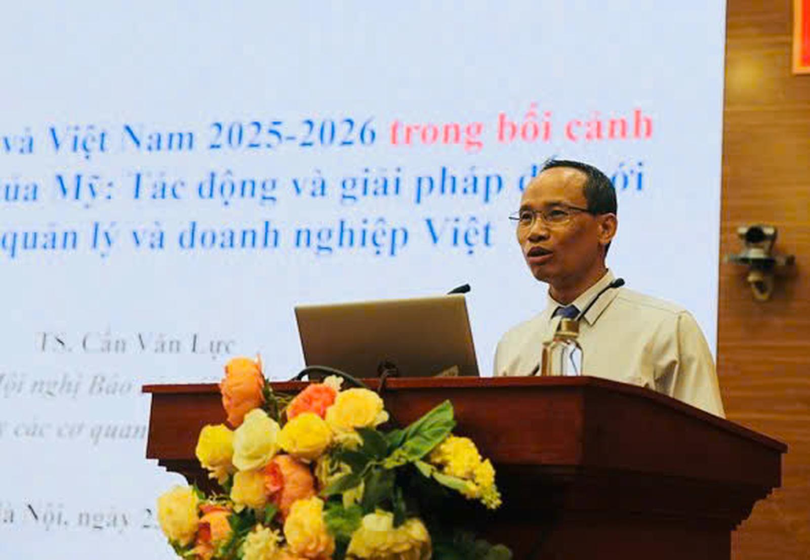 Các đại biểu dự hội nghị đã được nghe thông tin chuyên đề “Kinh tế thế giới và Việt Nam 2025-2026 trong bối cảnh thuế quan mới của Mỹ: Tác động và giải pháp đối với cơ quan quản lý và doanh nghiệp Việt Nam”, do Tiến sĩ Cấn Văn Lực, thành viên Hội đồng tư vấn chính sách của Thủ tướng trình bày.