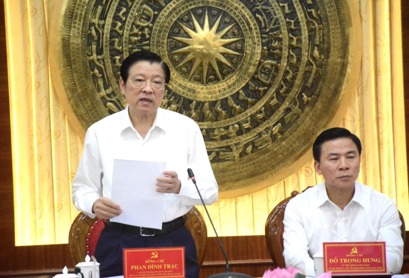 Đồng chí Phan Đình Trạc, Trưởng Ban Nội chính Trung ương làm việc với Ban Thường vụ Tỉnh ủy Thanh Hóa. Ảnh: VT