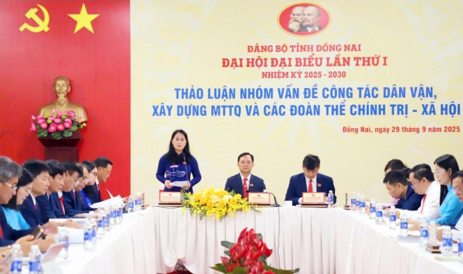 Tổ thảo luận số 5 do ông Hà Anh Dũng, Ủy viên Ban Thường vụ Tỉnh ủy, Phó Chủ tịch Thường trực Ủy ban MTTQ tỉnh và bà Đặng Minh Nguyệt, Ủy viên Ban Thường vụ Tỉnh ủy, Bí thư Đảng ủy, Chủ tịch HĐND phường Long Khánh; ông Nguyễn Quốc Dũng, Tỉnh ủy viên, Phó Chủ tịch Ủy ban MTTQ tỉnh, Chủ tịch Liên đoàn Lao động tỉnh đồng chủ trì.