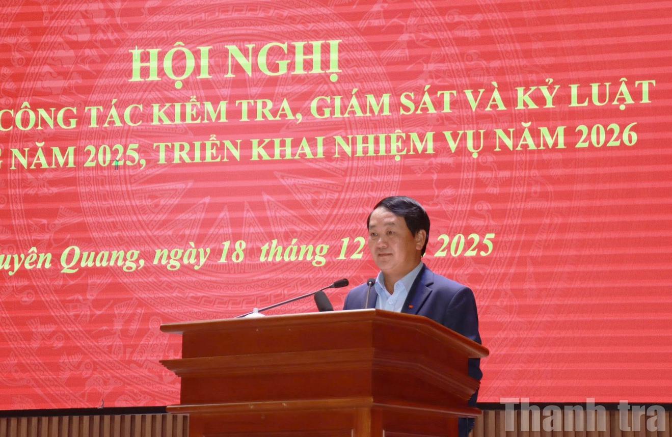 Thông tin tại Hội nghị cho biết, năm 2025, công tác kiểm tra, giám sát và kỷ luật Đảng của tỉnh Tuyên Quang được triển khai đồng bộ, toàn diện, bám sát sự lãnh đạo, chỉ đạo của Trung ương và Ban Thường vụ Tỉnh ủy Tuyên Quang đáp ứng yêu cầu nhiệm vụ trong bối cảnh sắp xếp, sáp nhập tổ chức bộ máy và chuẩn bị Đại hội Đảng bộ các cấp.