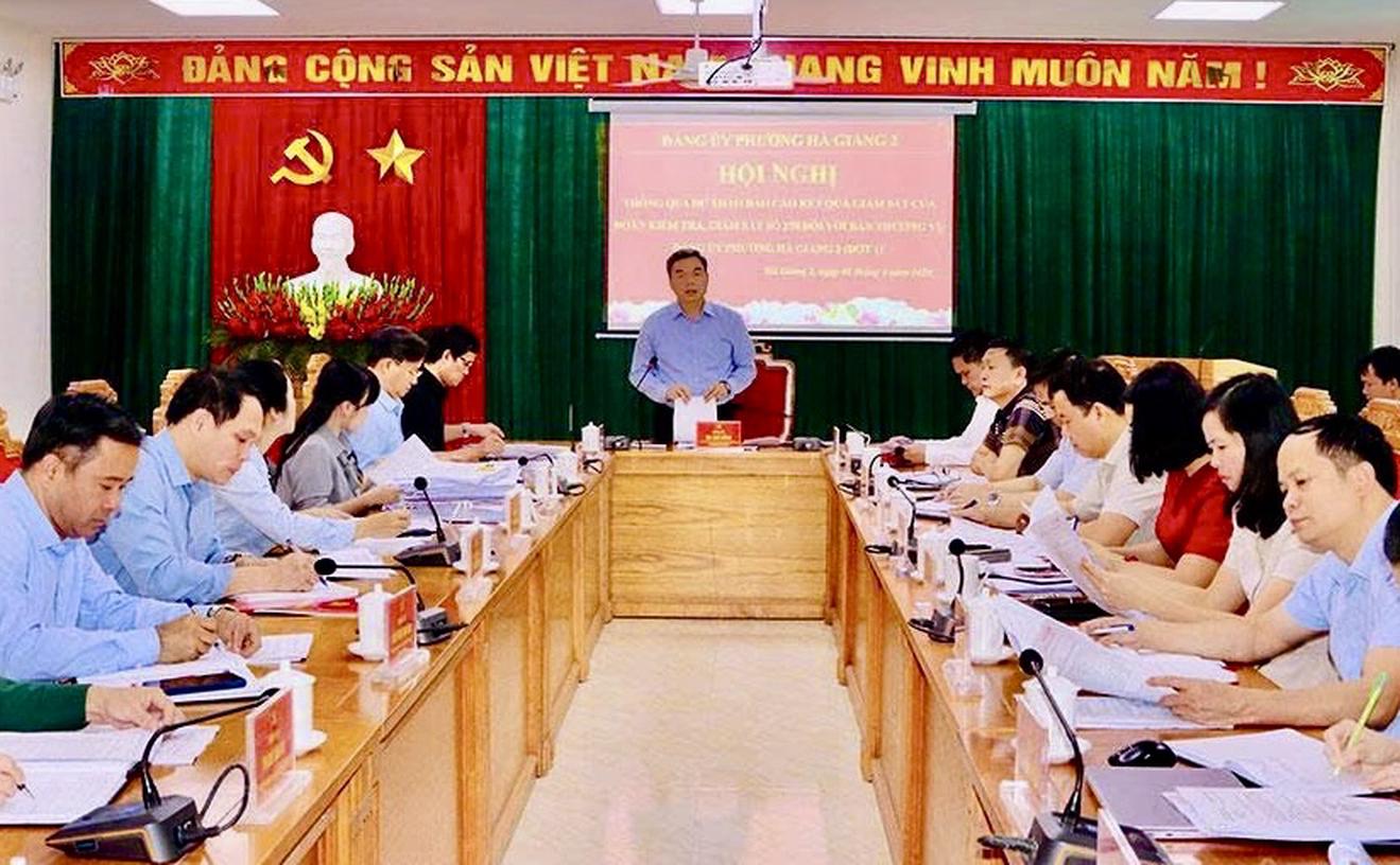 Đoàn kiểm tra giám sát số 270 của Ban Thường vụ Tỉnh ủy thông qua dự thảo báo cáo kết quả giám sát đối với Ban Thường vụ Đảng ủy phường Hà Giang 2, đợt 1 năm 2026 vào ngày 1/4. Ảnh: Khánh Huyền