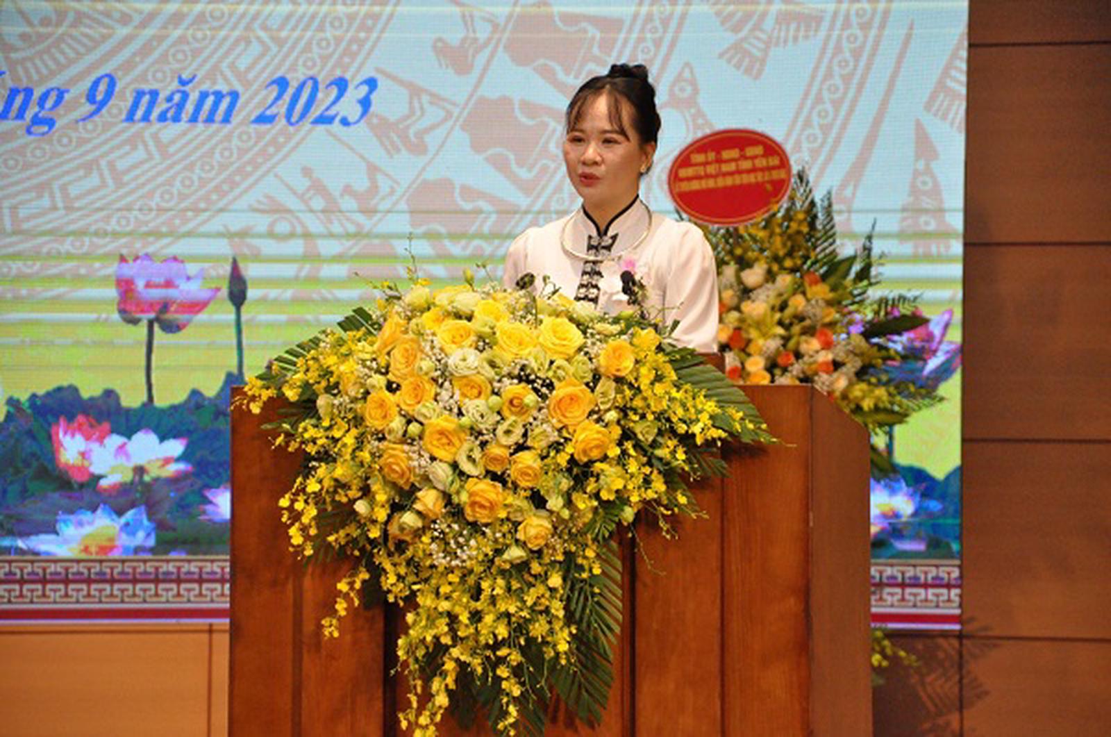 Báo cáo tham luận của Chủ tịch Hội Phụ nữ Thạch Nham, thị xã Nghĩa Lộ. Ảnh: Bùi Bình