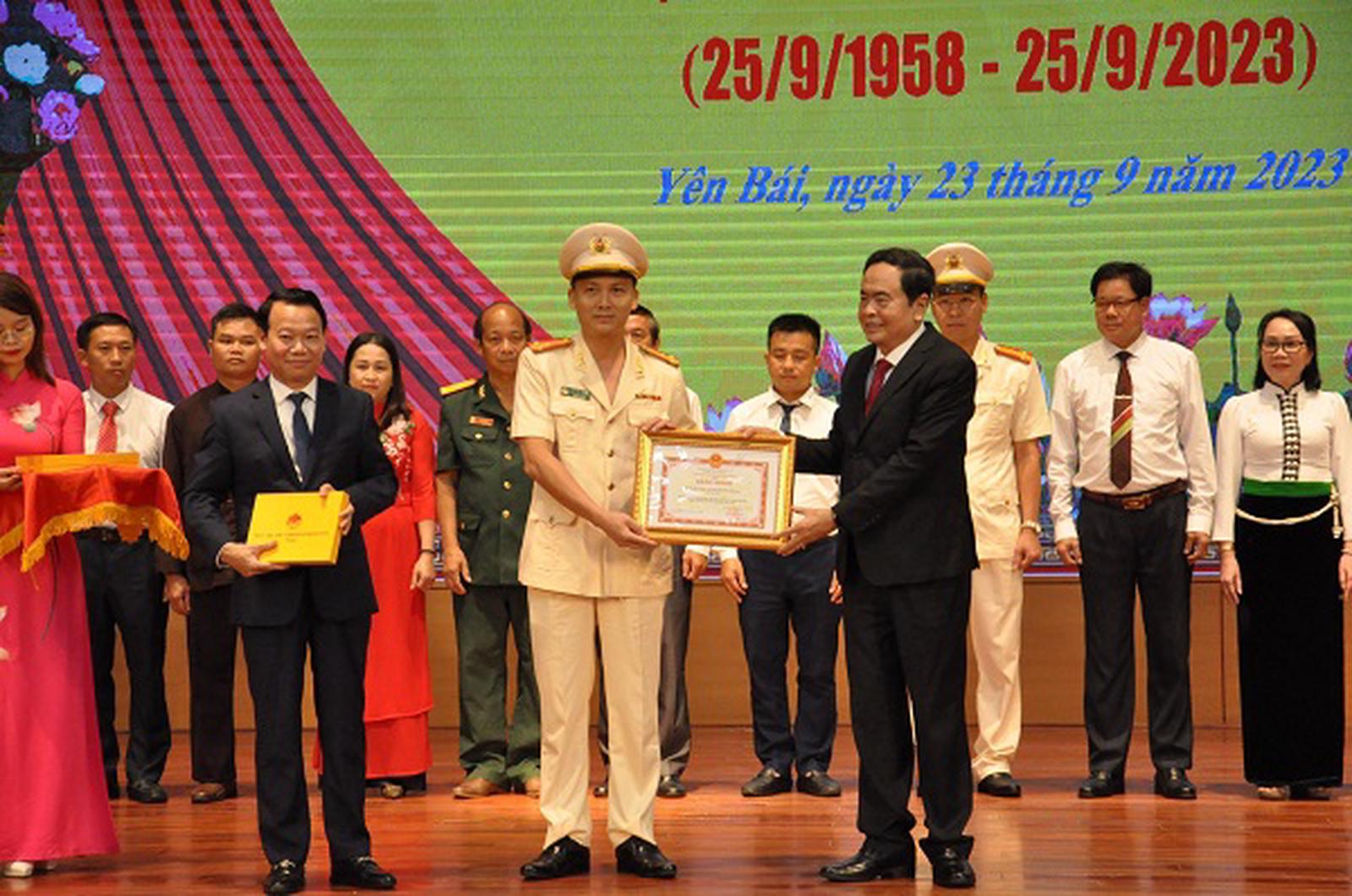 Phó Chủ tịch Thường trực Quốc hội trao bằng khen và quà lưu niệm cho tập thể Công an thành phố Yên Bái. Ảnh: Bùi Bình