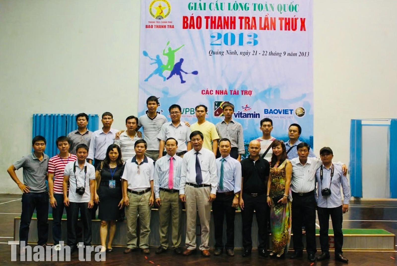 Ông Nguyễn Văn Bình, nguyên Tổng Biên tập Báo Thanh tra chụp ảnh lưu niệm cùng tập thể cán bộ, phóng viên Báo tại Giải cầu lông toàn quốc Báo Thanh tra lần thứ X, năm 2013. Ảnh: BTT