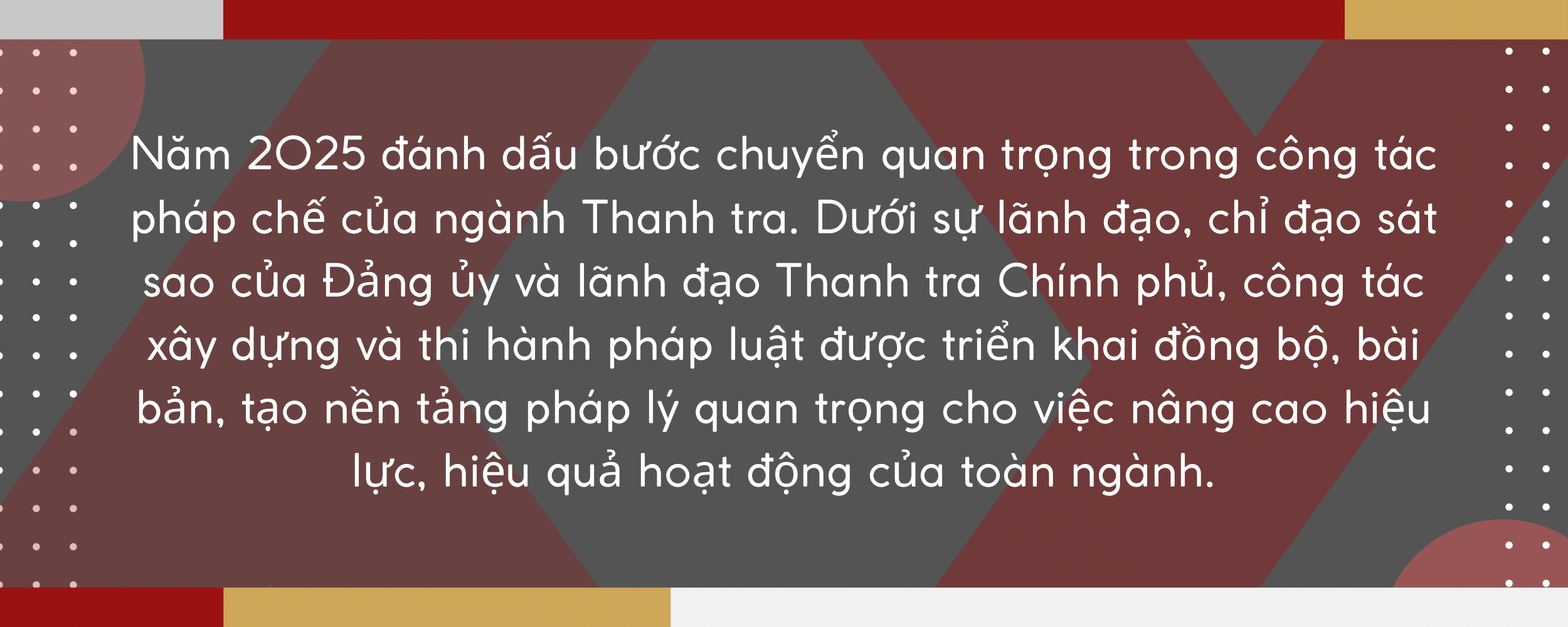 Trong năm 2025, công tác xây dựng pháp luật tiếp tục được Ban Thường vụ Đảng ủy và lãnh đạo Thanh tra Chính phủ xác định là một trong những nhiệm vụ trọng tâm, có ý nghĩa lâu dài đối với sự phát triển của ngành. Việc tập trung lãnh đạo, chỉ đạo đã tạo chuyển biến rõ nét trong công tác xây dựng pháp luật, từng bước hoàn thiện khuôn khổ pháp lý cho tổ chức và hoạt động của hệ thống cơ quan thanh tra.