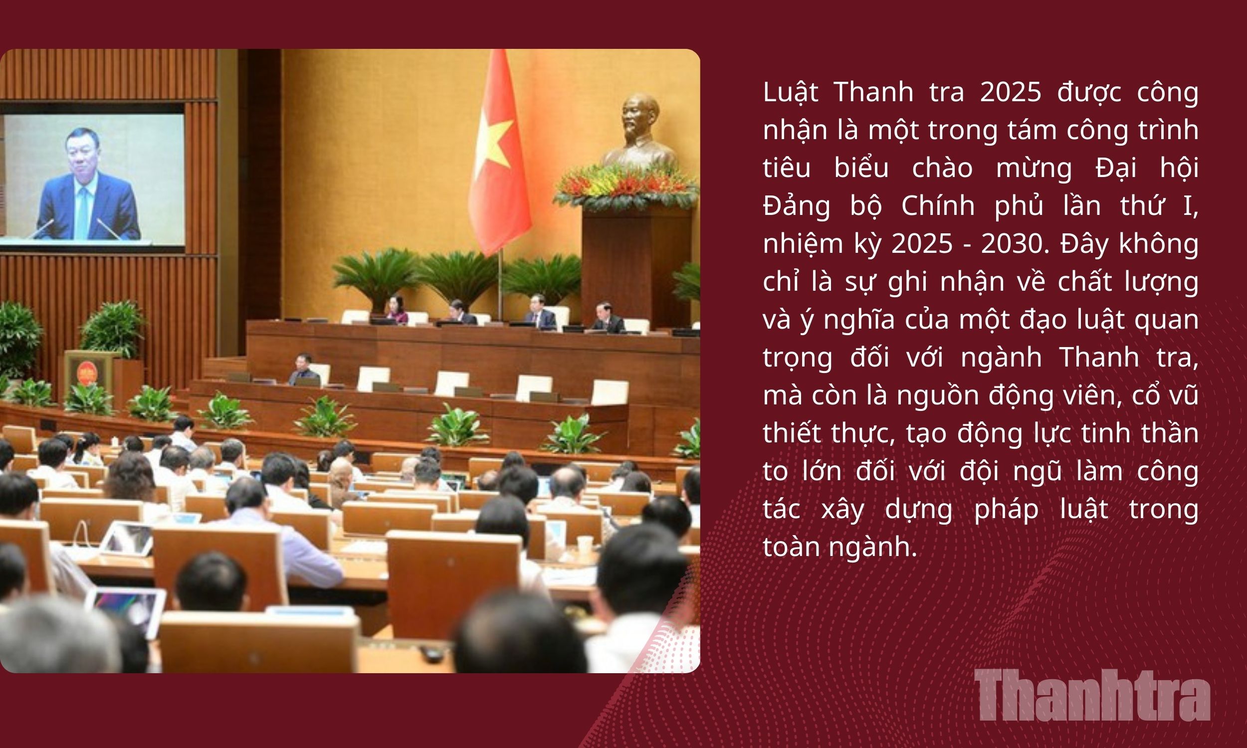 Năm 2025, Thanh tra Chính phủ đã phối hợp với các cơ quan báo chí tuyên truyền sâu rộng các chủ trương, chính sách và văn bản pháp luật quan trọng như Kết luận số 134-KL/TW của Bộ Chính trị, Ban Bí thư, Luật Thanh tra năm 2025, các nghị định về tổ chức bộ máy và phân định thẩm quyền chính quyền địa phương 2 cấp, cùng các thông tư hướng dẫn thi hành, qua đó góp phần tạo sự thống nhất trong nhận thức và tổ chức thực hiện trong toàn ngành và ở địa phương.