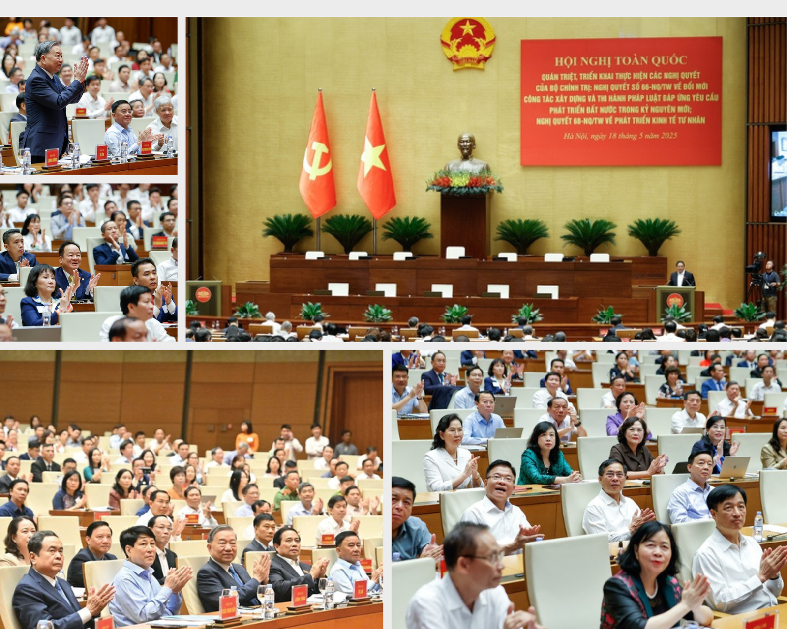 Tổng Bí thư Tô Lâm và các đại biểu dự Hội nghị toàn quốc quán triệt và triển khai thực hiện Nghị quyết số 66-NQ/TW của Bộ Chính trị về đổi mới công tác xây dựng và thi hành pháp luật. Ảnh: VGP