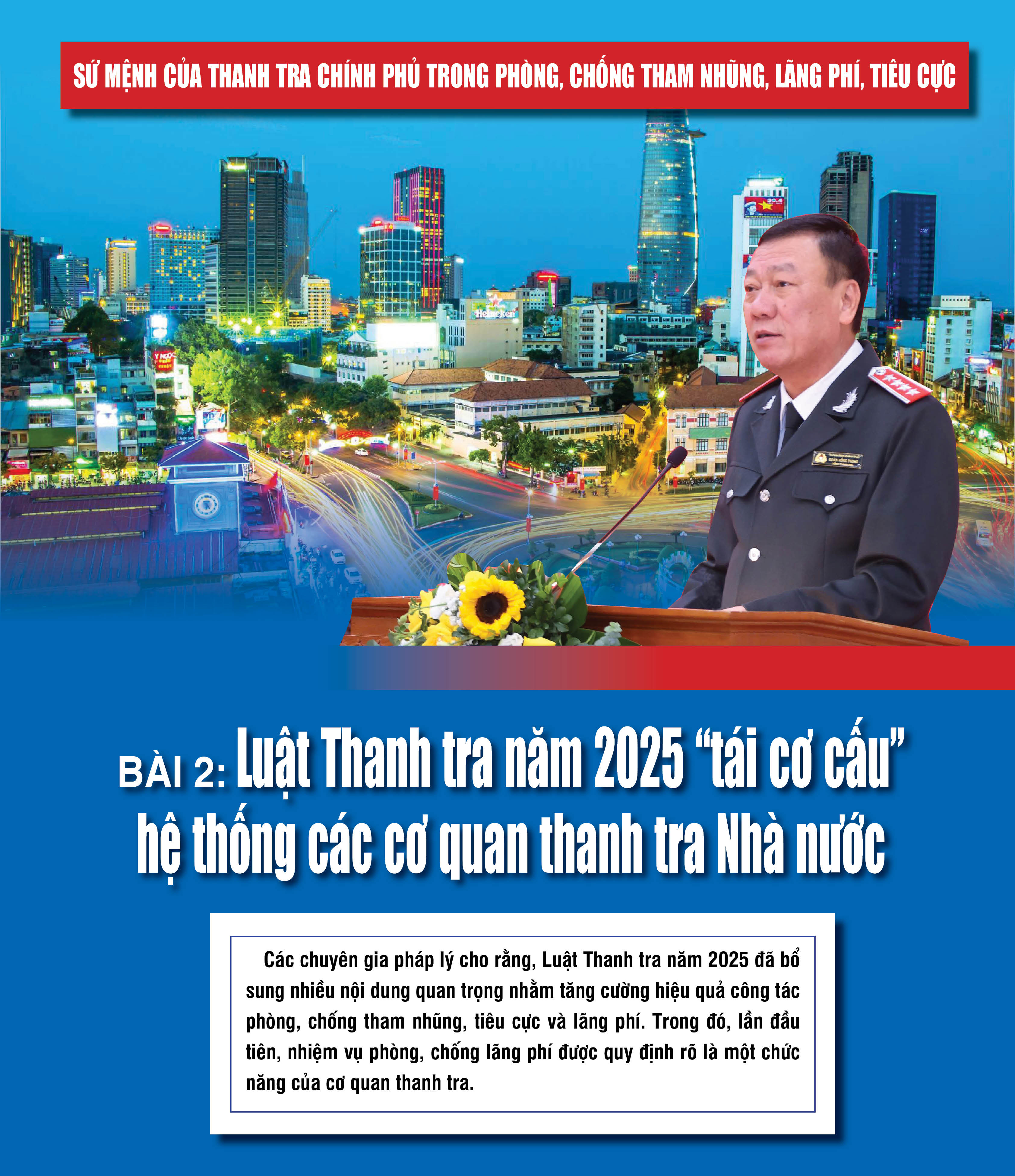 “Tôi nói rằng, đây là một quá trình “tái cơ cấu” tổ chức cơ quan thanh tra, vì Điều 7 của Luật quy định hệ thống các cơ quan thanh tra được tổ chức theo 2 cấp, gồm Thanh tra Chính phủ và Thanh tra tỉnh. Luật Thanh tra năm 2025 tập trung vào việc tránh chồng chéo, trùng lặp trong hoạt động thanh tra, kiểm tra và các hoạt động khác của nhà nước.