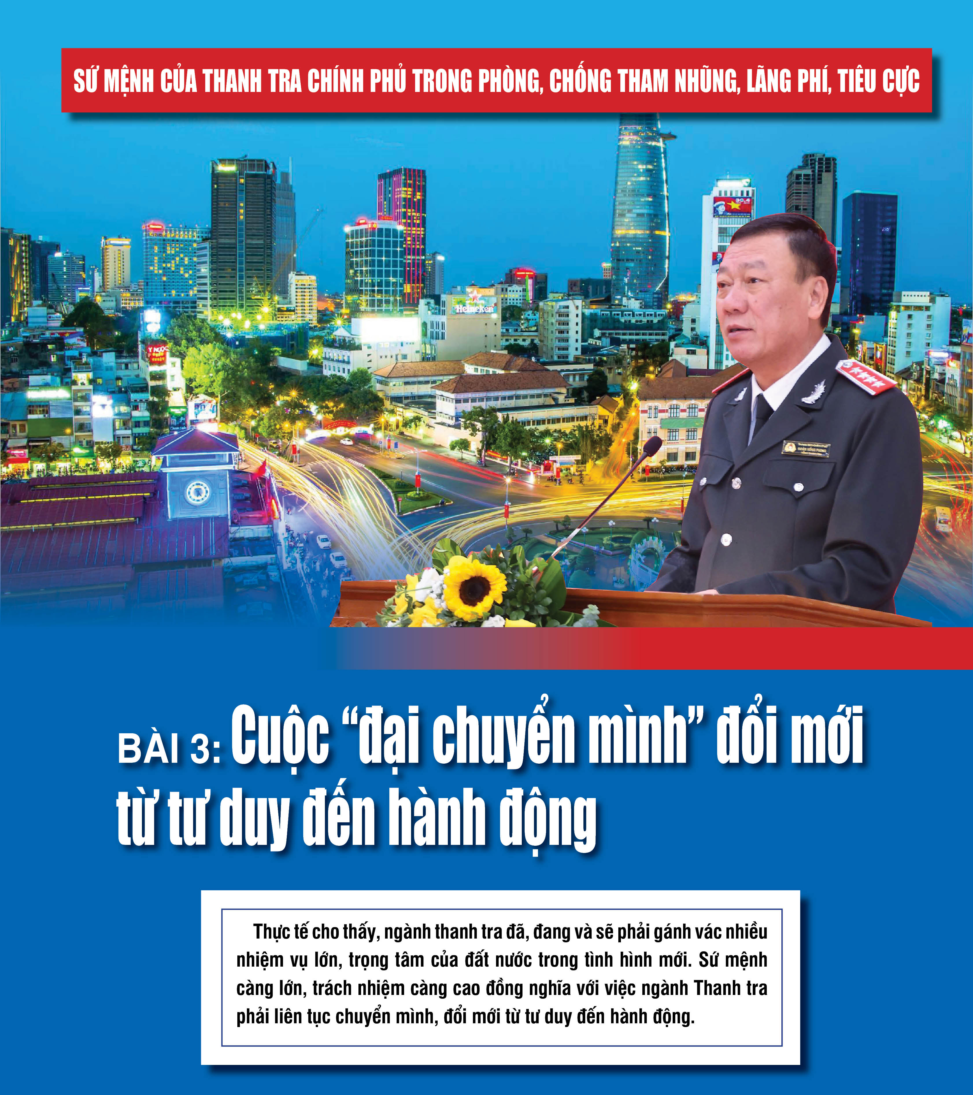 Nếu chỉ thay đổi bộ máy mà tư duy, cách làm vẫn như cũ thì sẽ rất khó để phát huy hiệu quả, nhất là trong bối cảnh nhiệm vụ ngành Thanh tra ngày càng nặng nề, phức tạp và yêu cầu cao hơn về tính minh bạch, kịp thời, hiệu quả”.