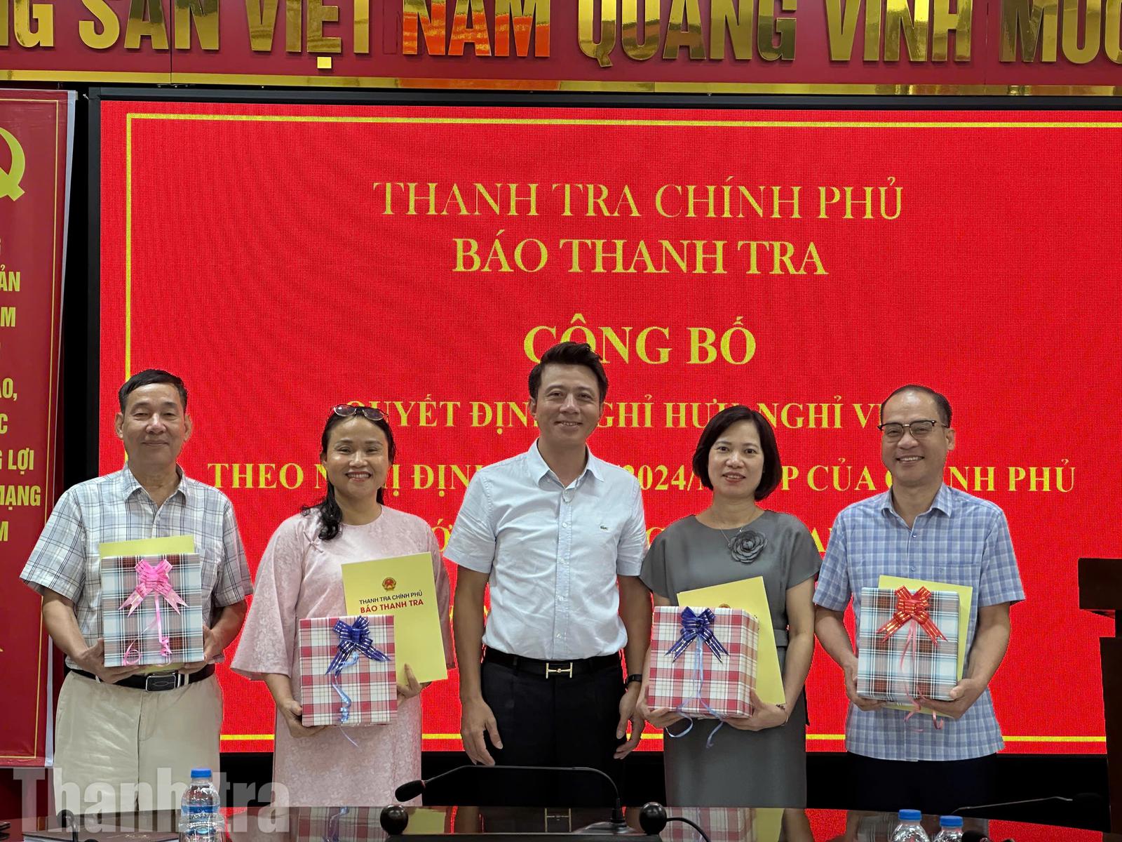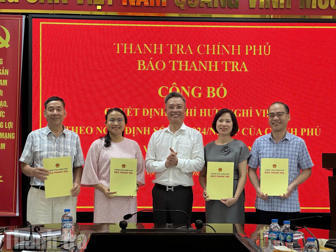Tại buổi công bố, bà Ngô Thị Tính, Trưởng phòng Trị sự đã thông tin các quyết định của Tổng Biên tập Báo Thanh tra về việc giải quyết chế độ hưu trí, nghỉ việc cho ông Lê Huy Tưởng, Trưởng Văn phòng đại diện miền Trung; bà Hoàng Thị Lan, Trưởng phòng Phóng viên Thanh tra và Nghiên cứu lý luận ngành; ông Nguyễn Đức Tạo, Phó Trưởng phòng Chuyên đề Truyền thông; bà Trần Thị Hà Bắc, Chuyên viên chính Phòng Phóng viên Pháp luật - Bạn đọc.