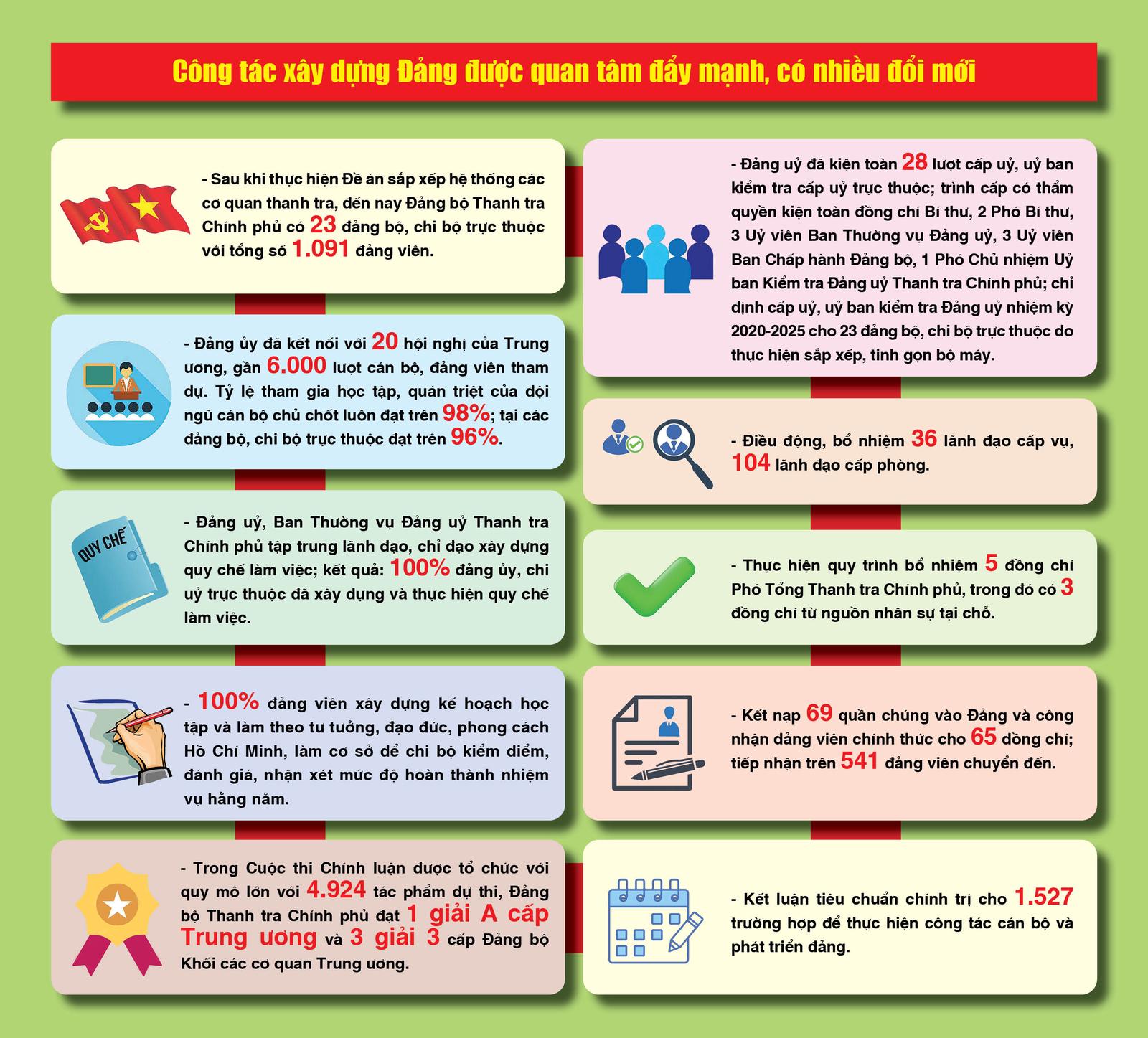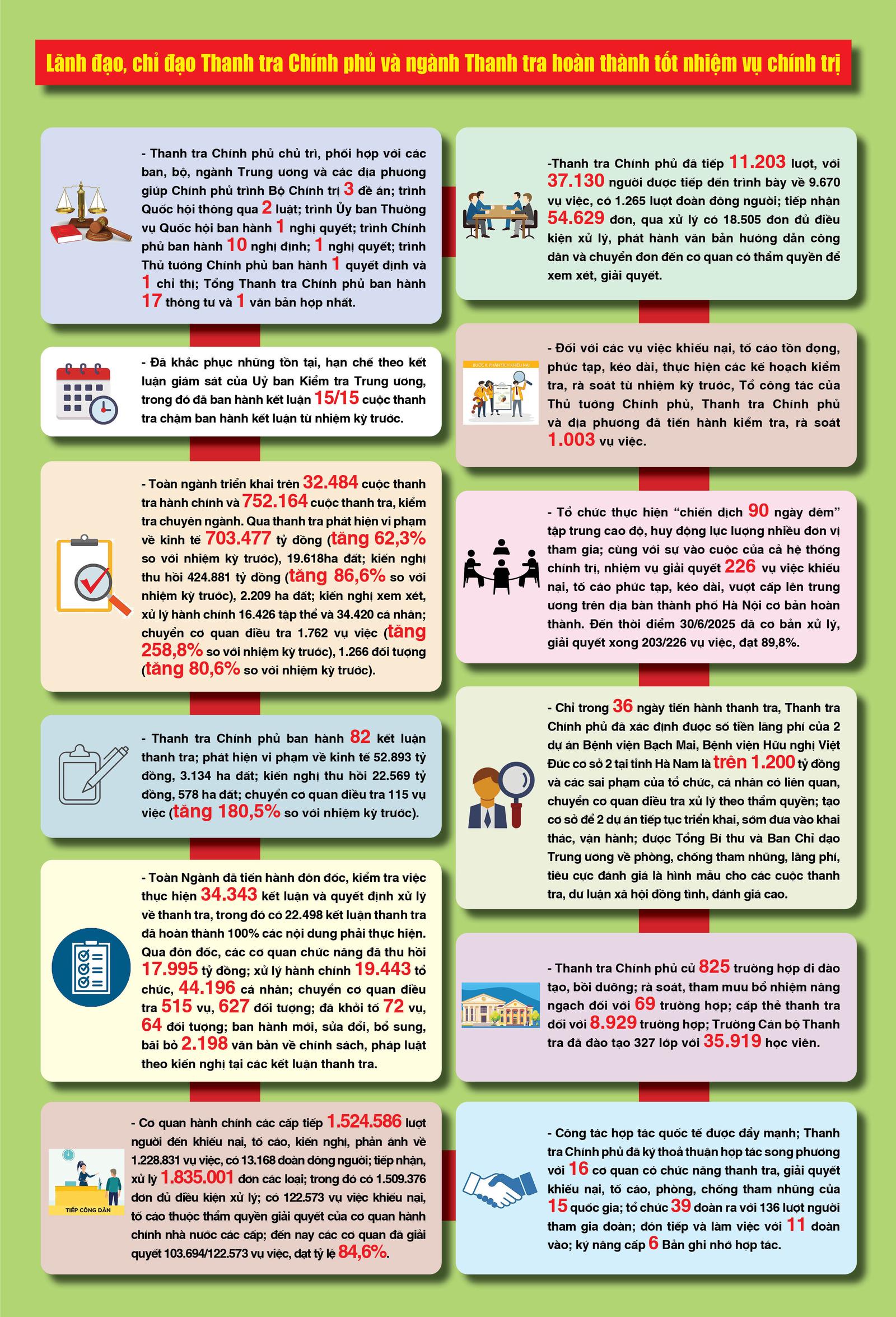 (Thanh tra) - Trước thềm Đại hội đại biểu Đảng bộ Thanh tra Chính phủ lần thứ I, nhiệm kỳ 2025-2030, chúng ta cùng nhìn lại bức tranh rực rỡ về một nhiệm kỳ 2020-2025 thành công vừa qua, với nhiều kết quả quan trọng, được khắc họa bằng những con số ấn tượng.